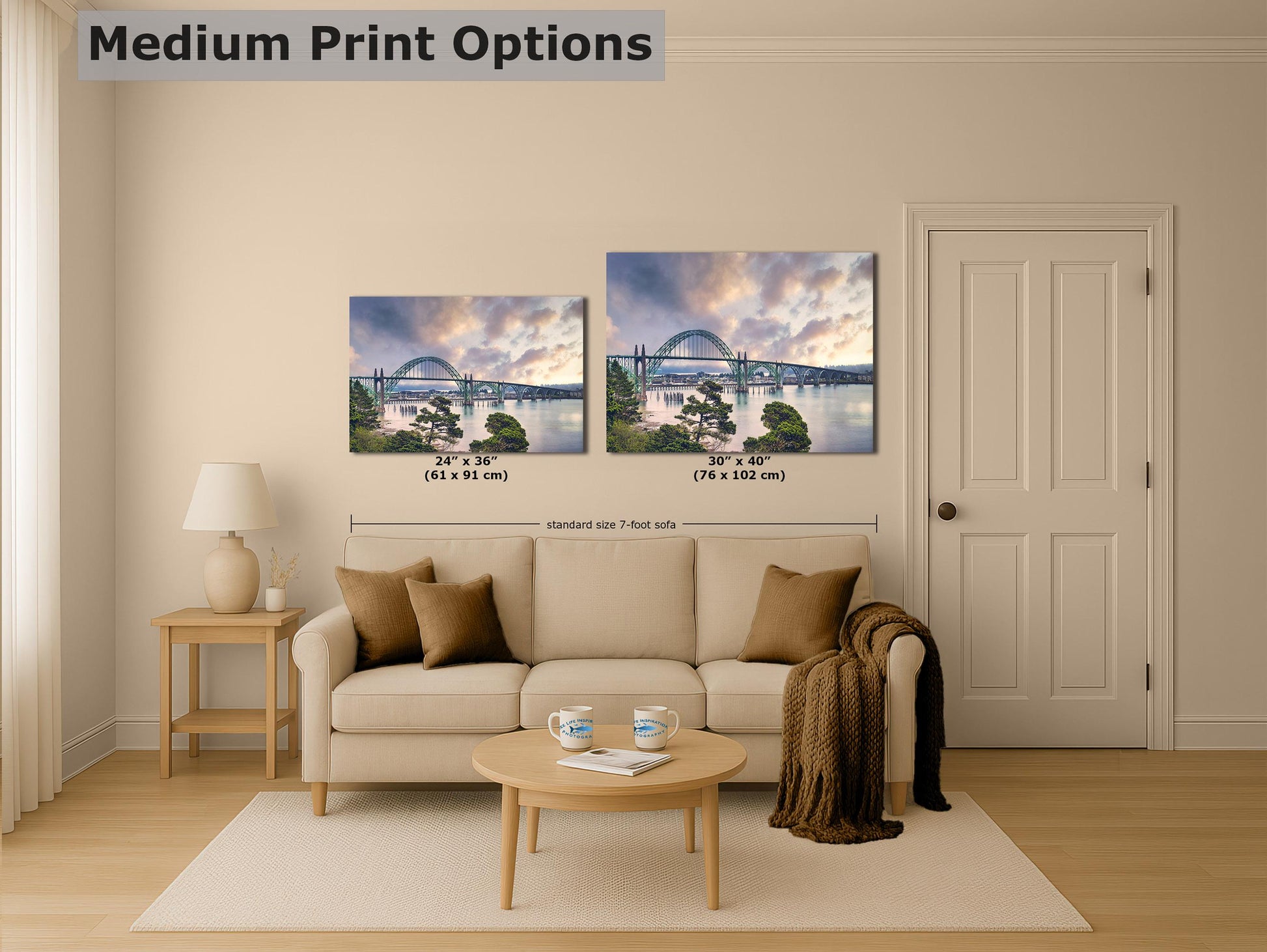 Bring the calming beauty of the Oregon coast into your home or office with this stunning Alsea Bay bridge picture from Waldport, Oregon.