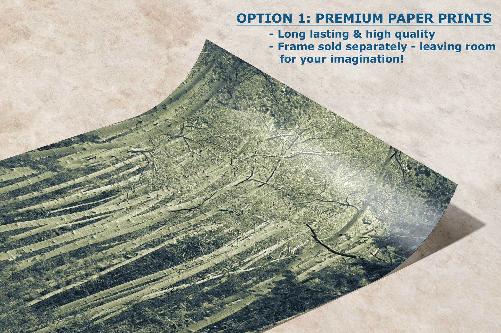 Bring the peaceful essence of the forest into your home or workspace with this captivating aspen tree picture nature photo. Add it to your cart today and immerse yourself in the soothing beauty of the woods!