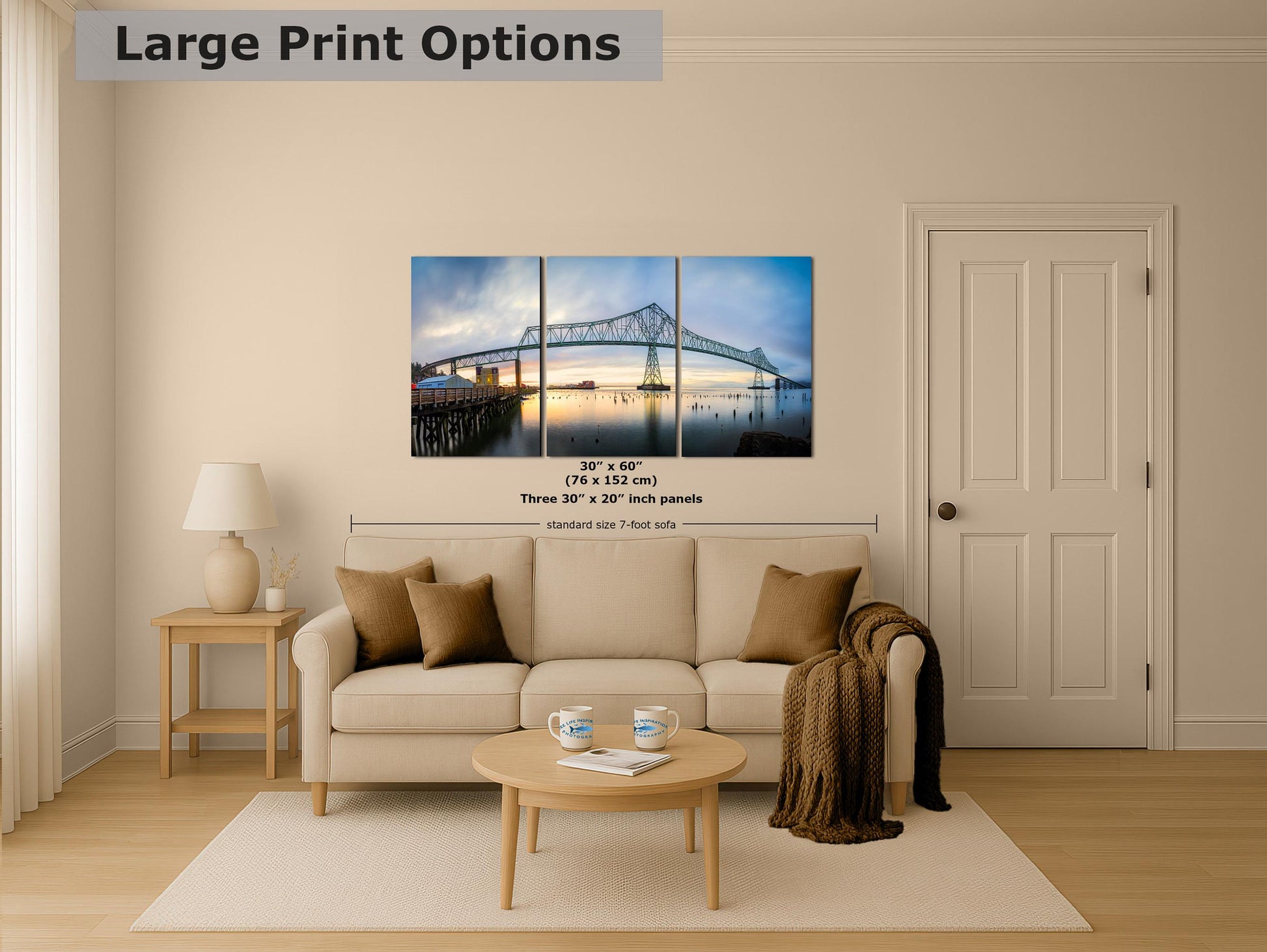 Astoria-Megler Bridge Picture Sunset, Oregon Coast Ocean Picture, Pacific Northwest Relaxation Decor for Meditation, Office, and House Decor
