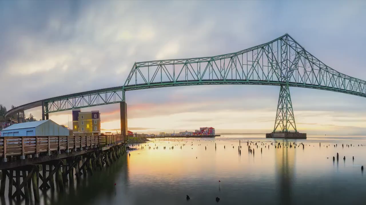 - Panorama scene capturing the entire bridge spanning all the way from Oregon to Washington