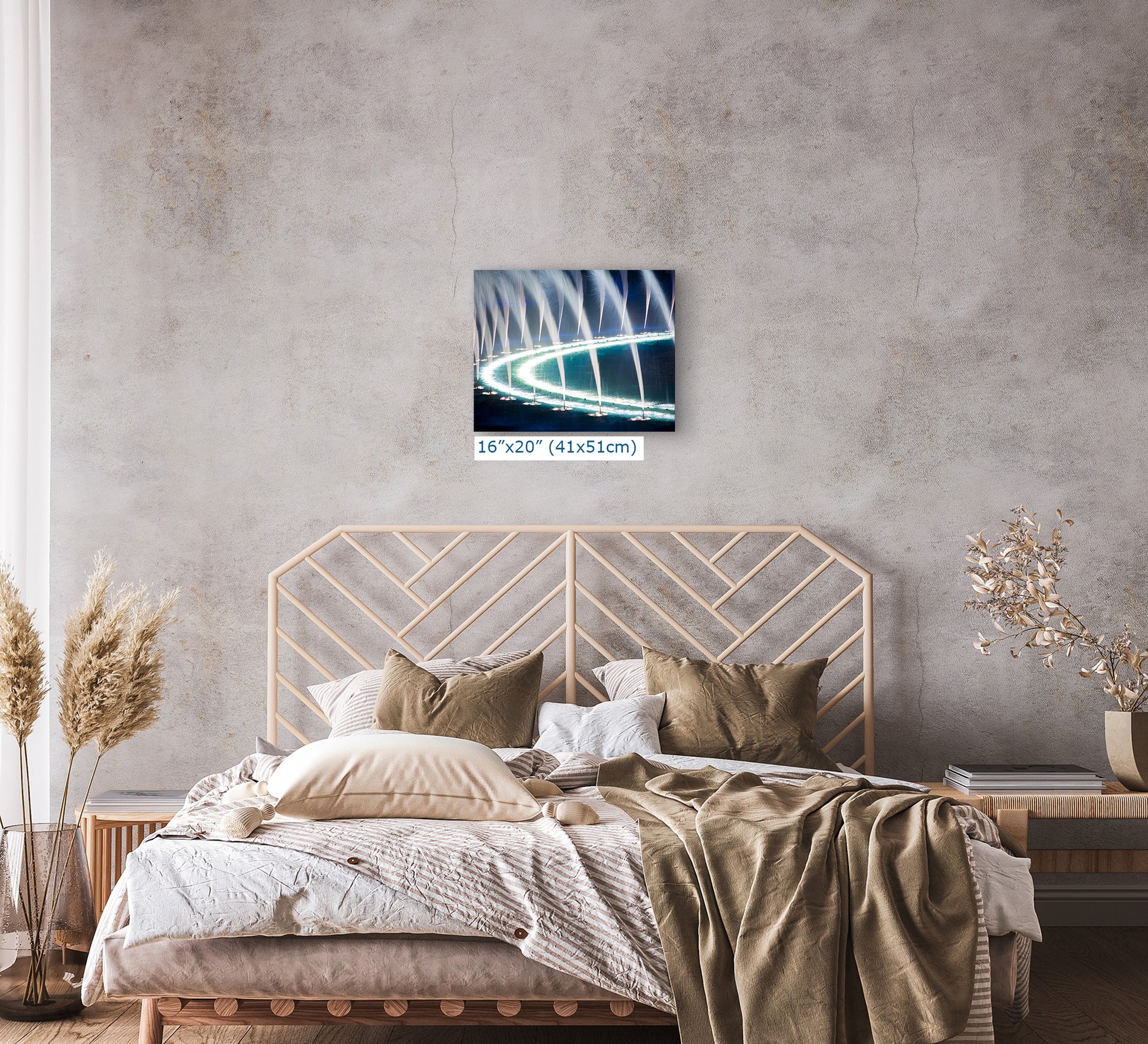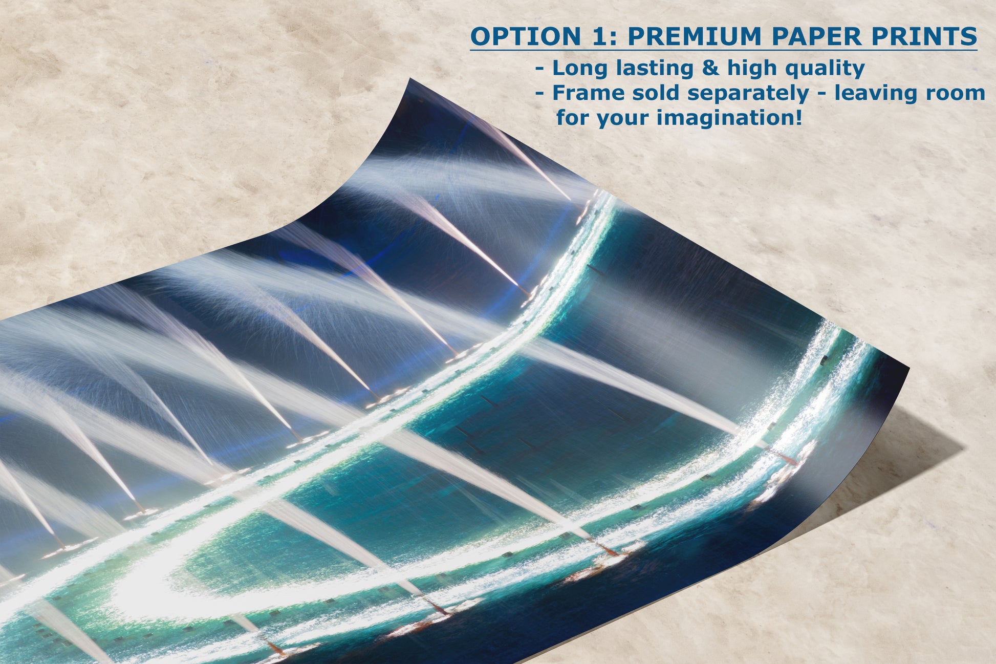 This unique water picture transforms the dynamic water jets into a gentle cascade of light and color, creating a stunning visual effect that enhances your decor. The high-quality print showcases the iconic Bellagio fountains in a new and artistic way, making it an ideal wall decor for lovers of cityscape photography, abstract art, or water-themed visuals.