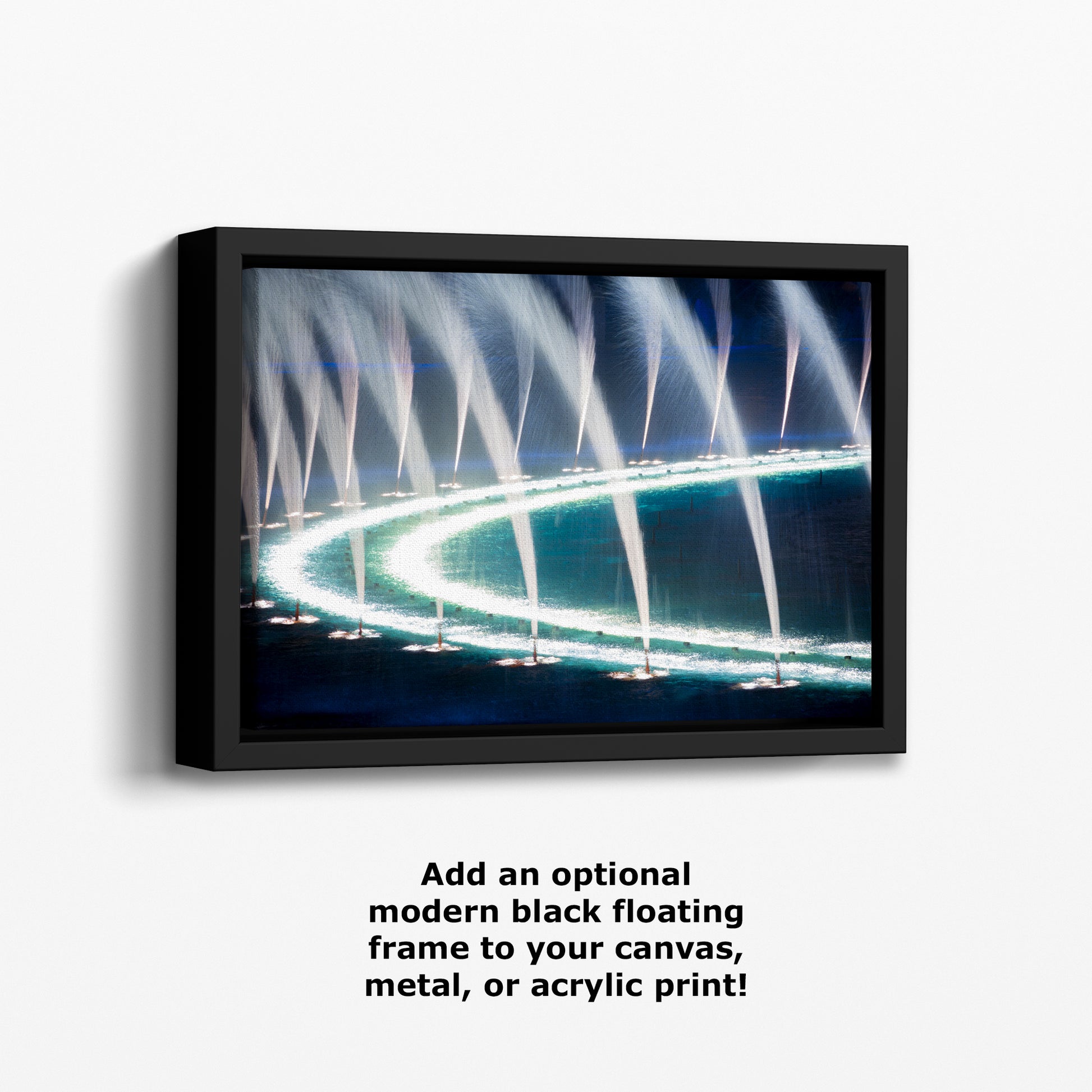 Featuring the iconic fountains in an abstract, ethereal style, this art print beautifully captures the mesmerizing night water display with vibrant colors and soft lighting. Perfect for adding a touch of sophistication, intrigue, and relaxation to any room, whether it's a living area, office, or bedroom.