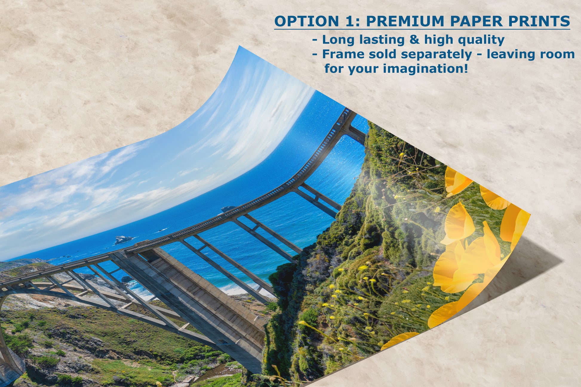 Perfect for relaxation, meditation, or adding a touch of natural wonder to your home, office, or apartment decor, this high-quality coastal nature photo captures the iconic Bixby Bridge nestled along the rugged cliffs of Big Sur.
