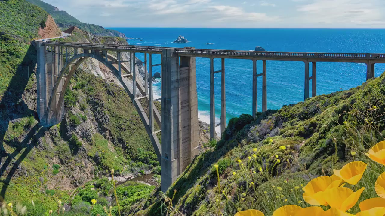 - Iconic Bixby Bridge, an engineering marvel and symbol of California's coast