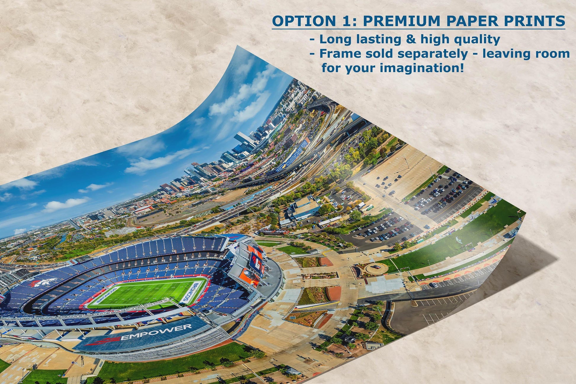 - Cityscape and Stadium: The panoramic view includes both the stadium and the stunning Denver skyline, perfect for fans and city lovers alike.