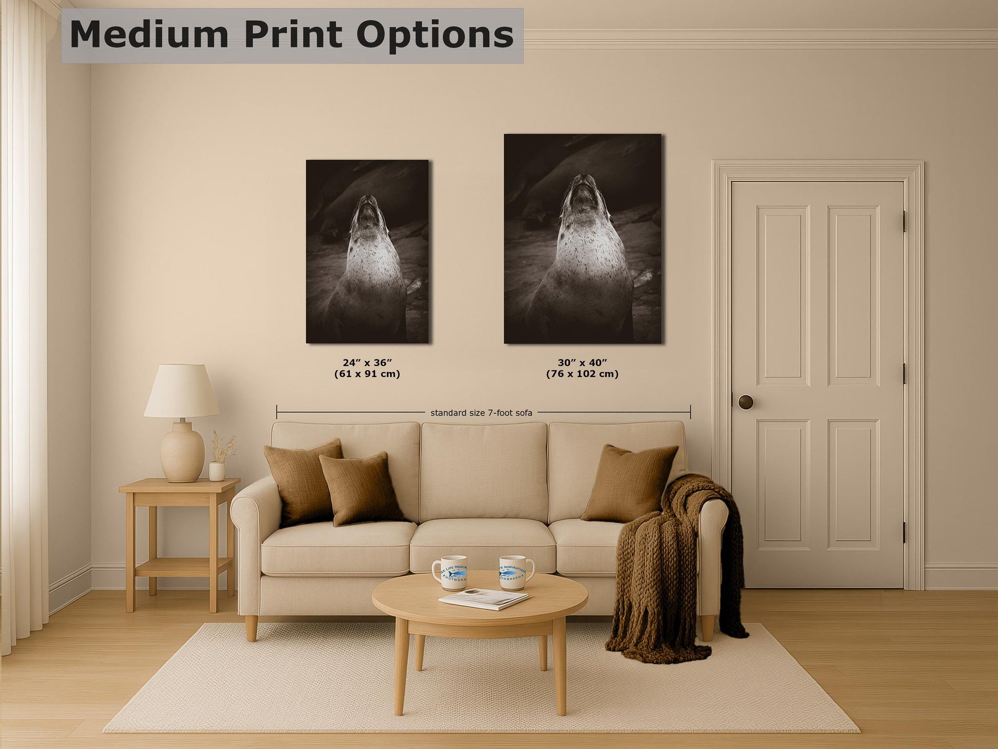 - High-quality wildlife photography print showcasing a majestic California sea lion