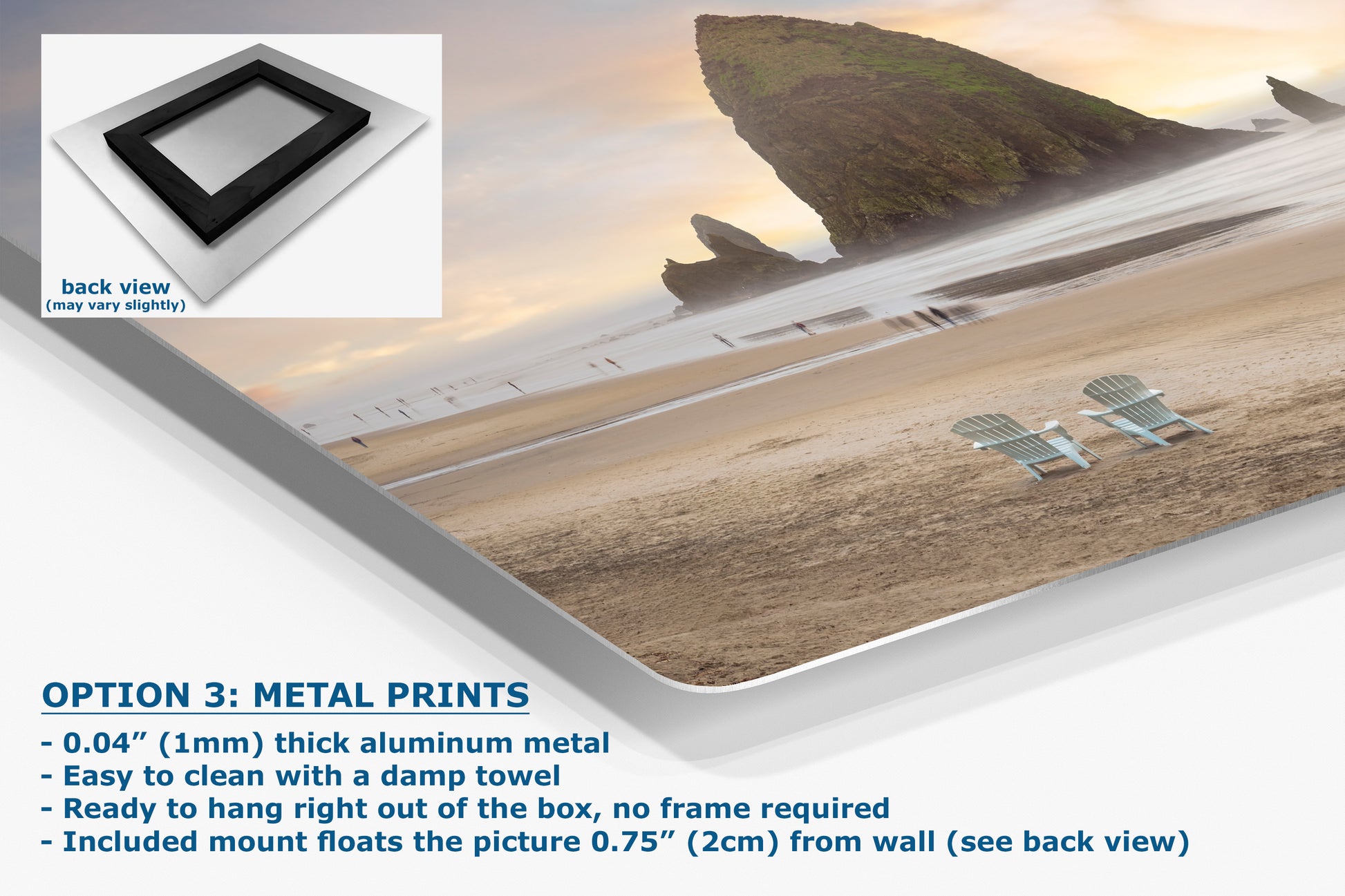 - Floating metal art: 0.04" (1mm) thick specialty coated aluminum metal includes a mount that floats the picture 0.75" (2cm) from your wall