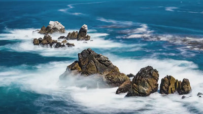 Featuring vibrant colors and high-resolution detail, this nature photo captures the majestic waves crashing against rugged rocks along the west coast, offering a peaceful escape that promotes relaxation and tranquility.