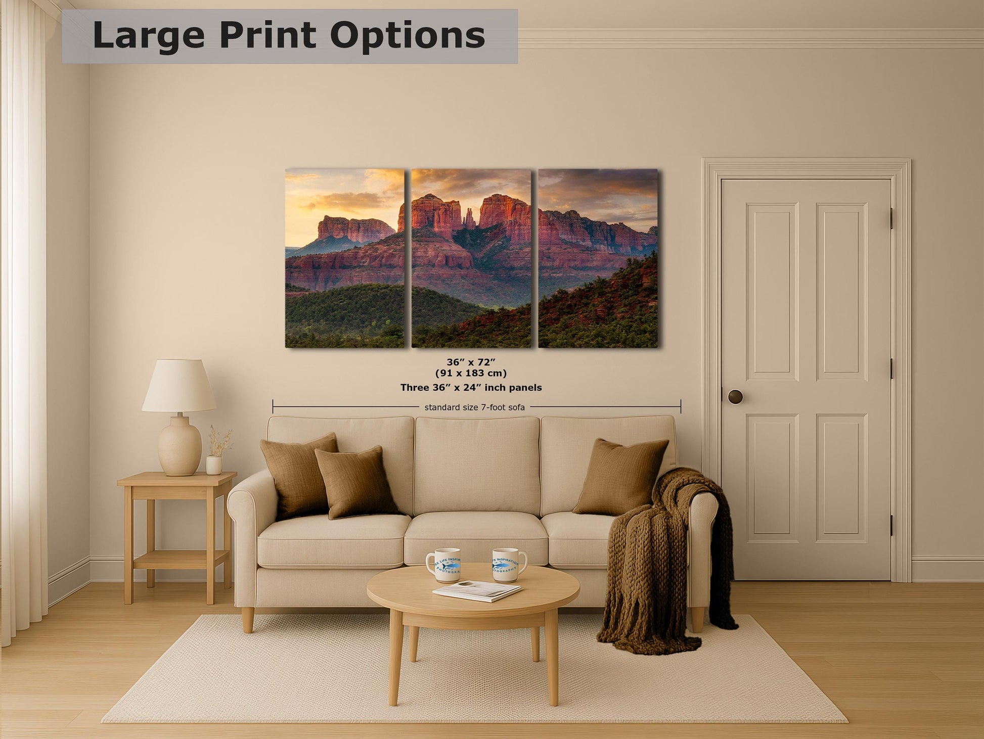- High-quality scenic desert print showcasing Cathedral Rock in Sedona, Arizona