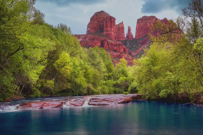 Cathedral Rock with Oak Creek, Sedona Arizona Desert Picture Nature Photo Relaxation Artwork for Meditation, Office, and House Decor