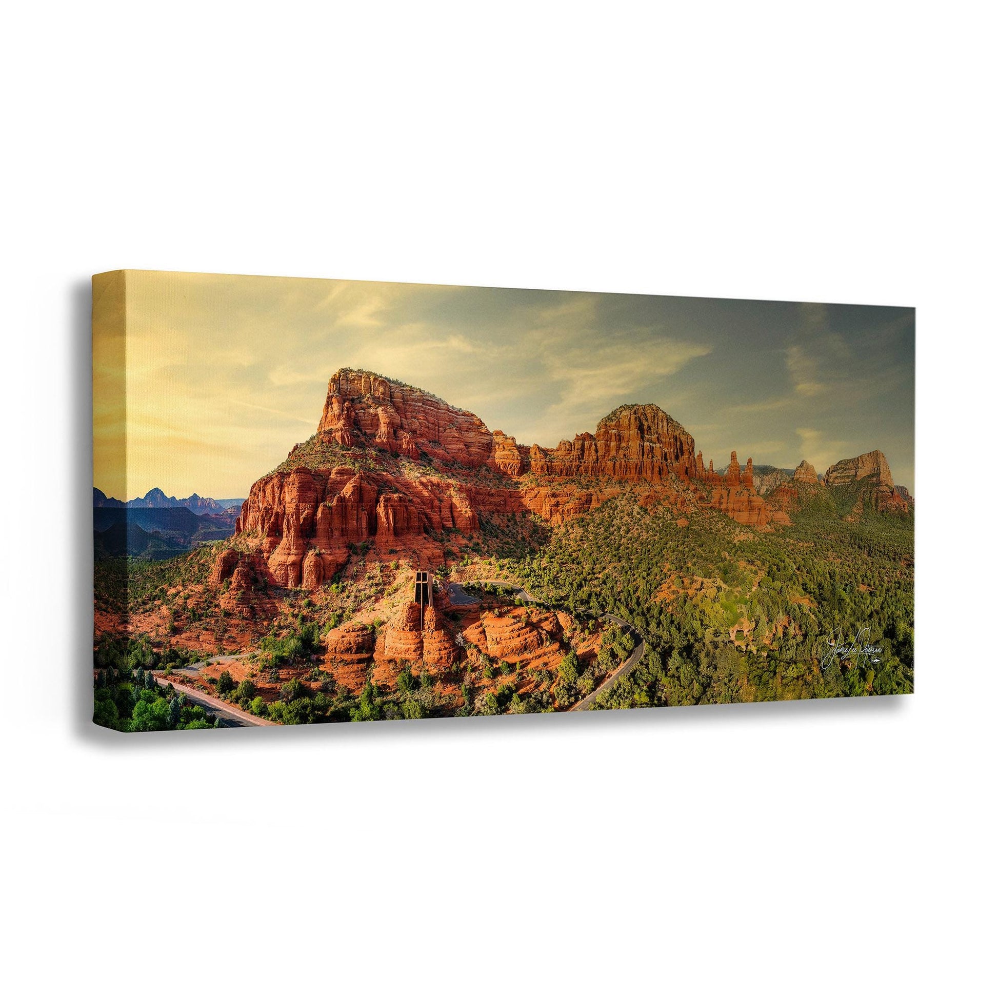 This vibrant canvas print captures the majestic red rock formations and the spiritual serenity of the Catholic church nestled amidst Sedona’s vibrant landscape. Perfect as southwestern wall art, this piece adds a touch of natural wonder and peaceful energy to any space.