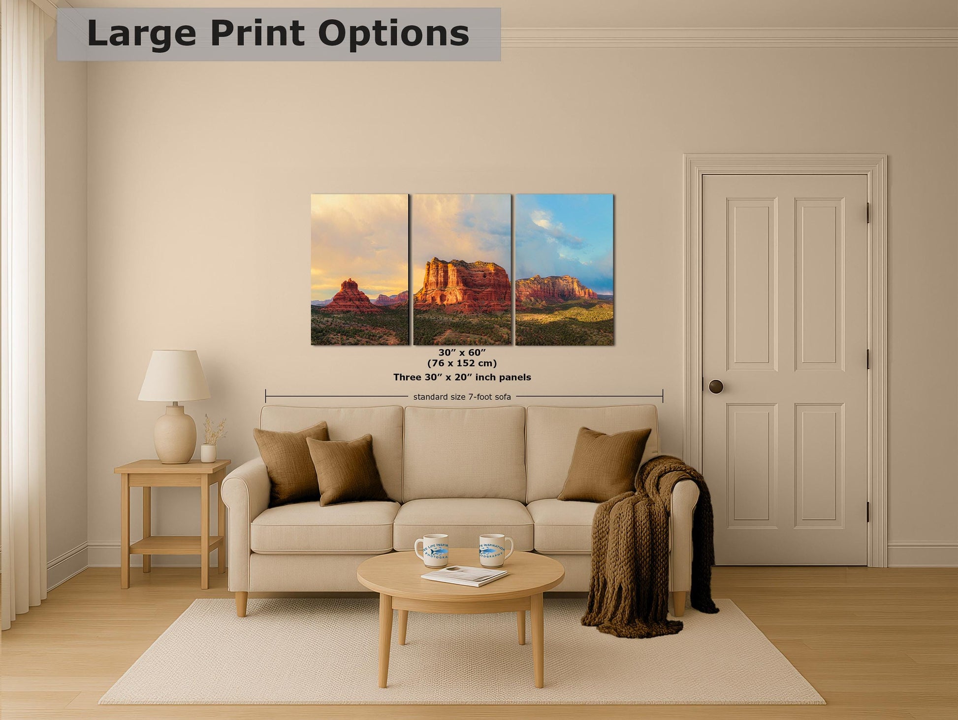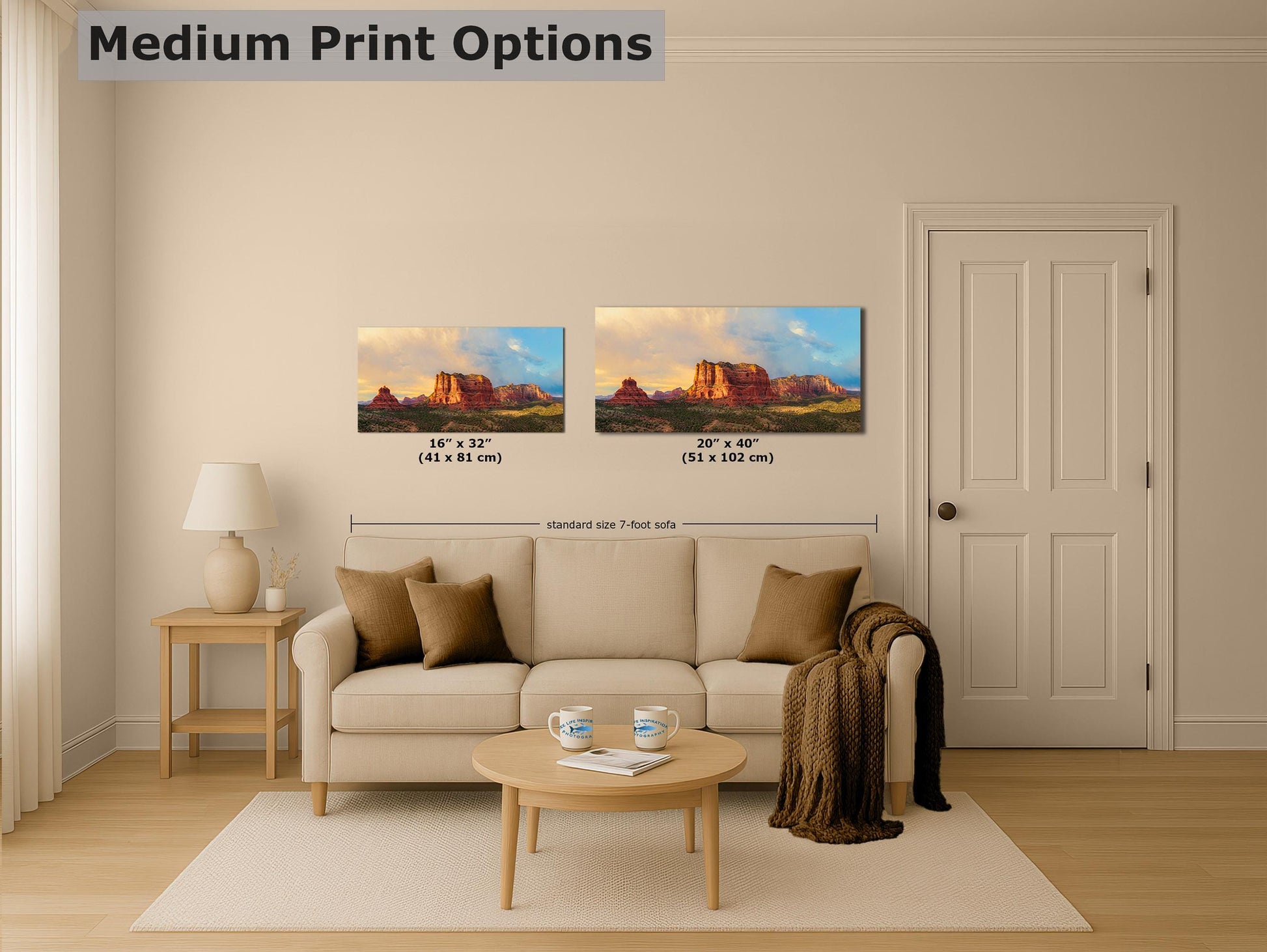 This vivid Southwestern wall art captures the iconic red rock formations in exquisite detail, showcasing the natural grandeur of Arizona’s desert landscape. Perfect for adding a touch of serenity and scenic charm to any space, this nature photo is an ideal choice for your home decor, office, or meditation area.