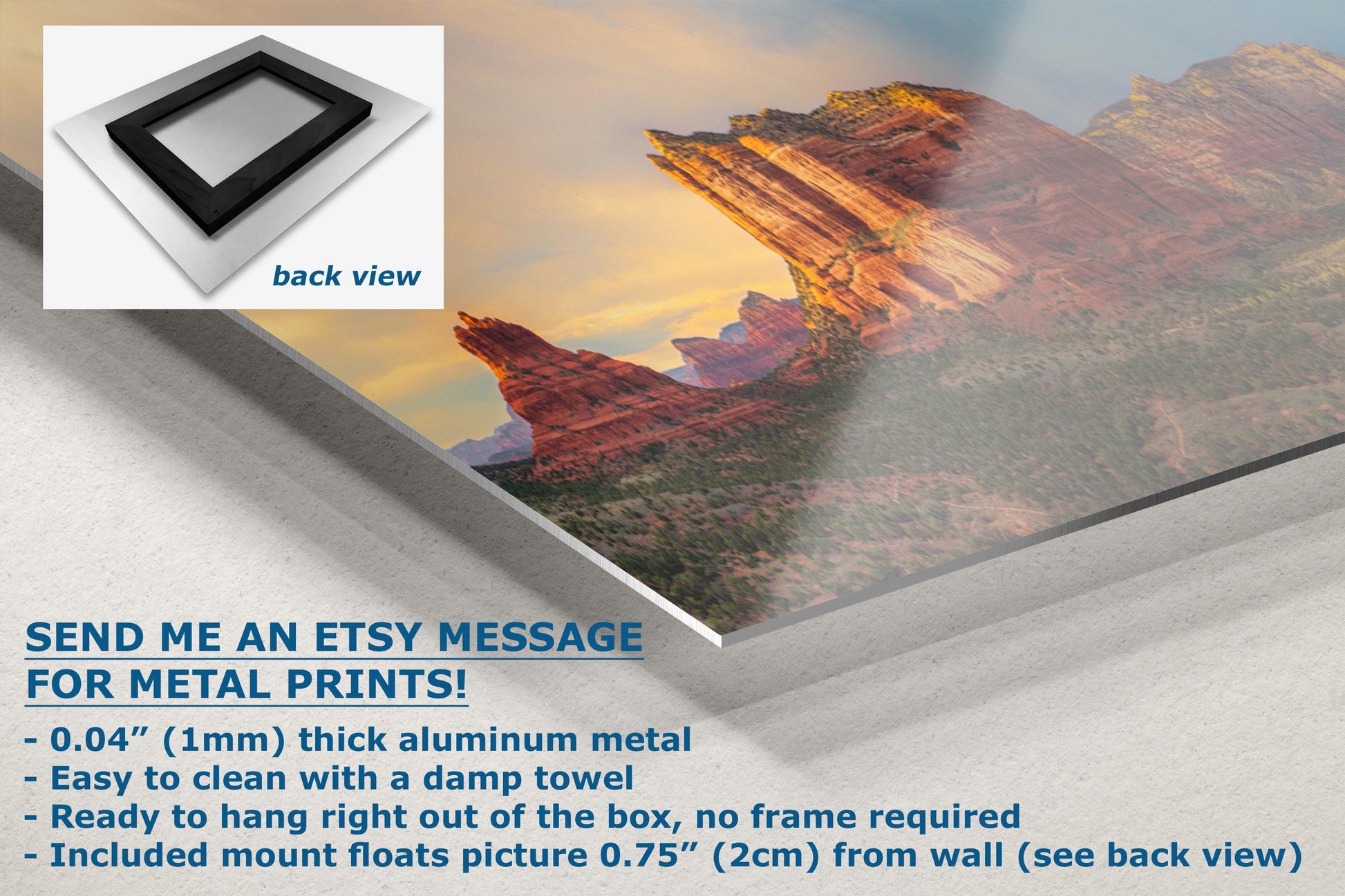 - Floating metal art: 0.04" (1mm) thick specialty coated aluminum metal includes a mount that floats the picture 0.75" (2cm) from your wall