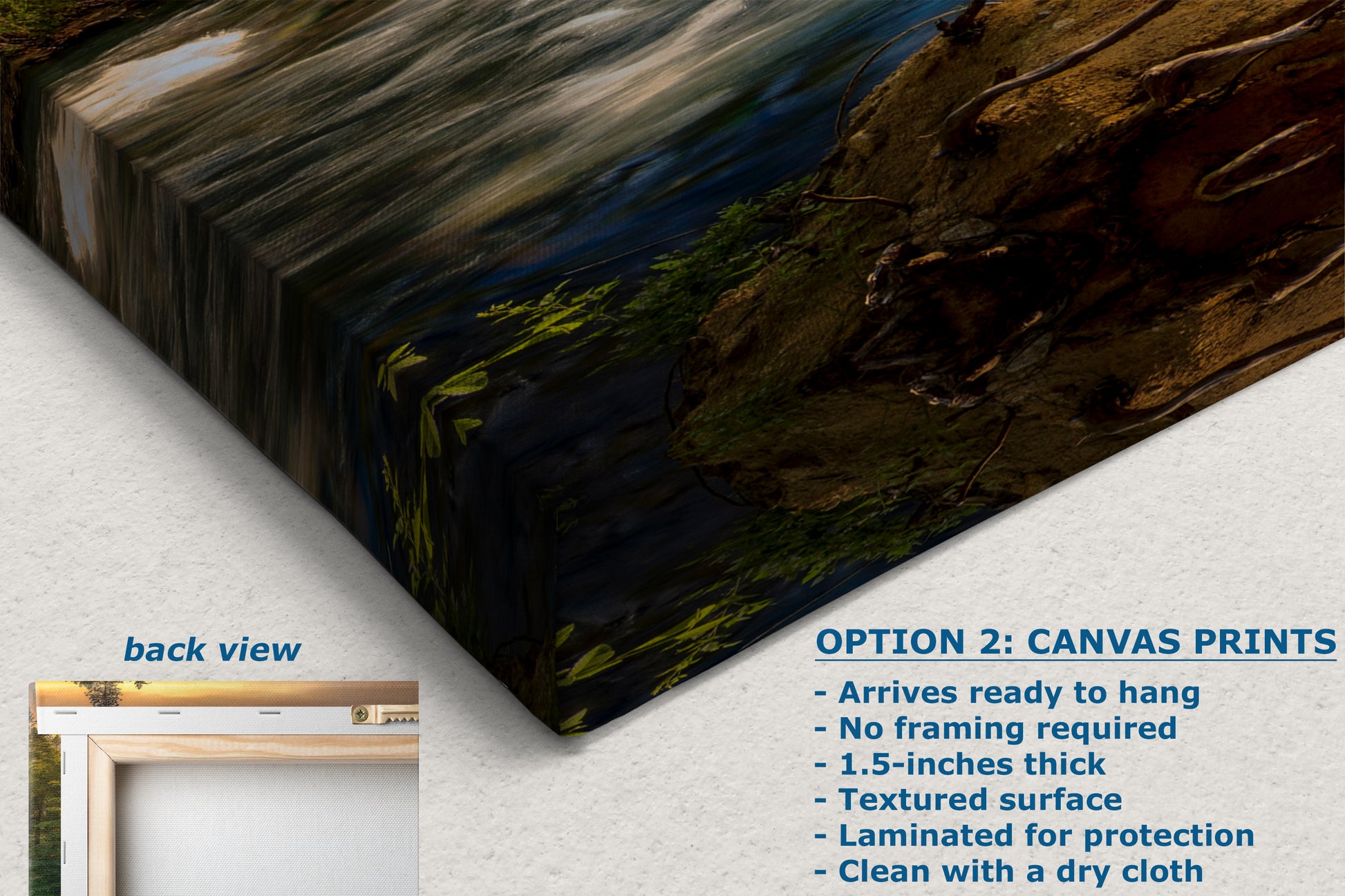 Perfect for nature decor, this breathtaking landscape wall art captures the tranquil morning light illuminating the mountains and river, creating an atmosphere of peace and natural splendor.
