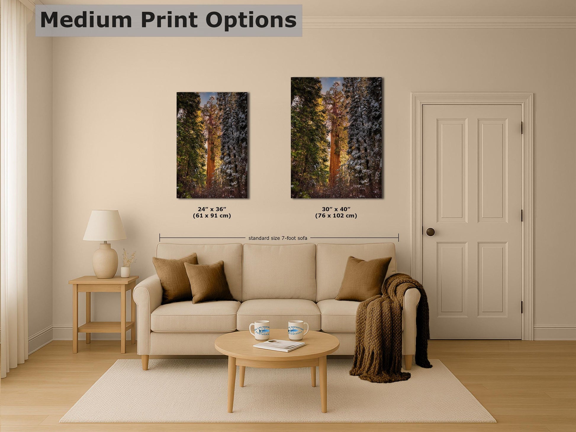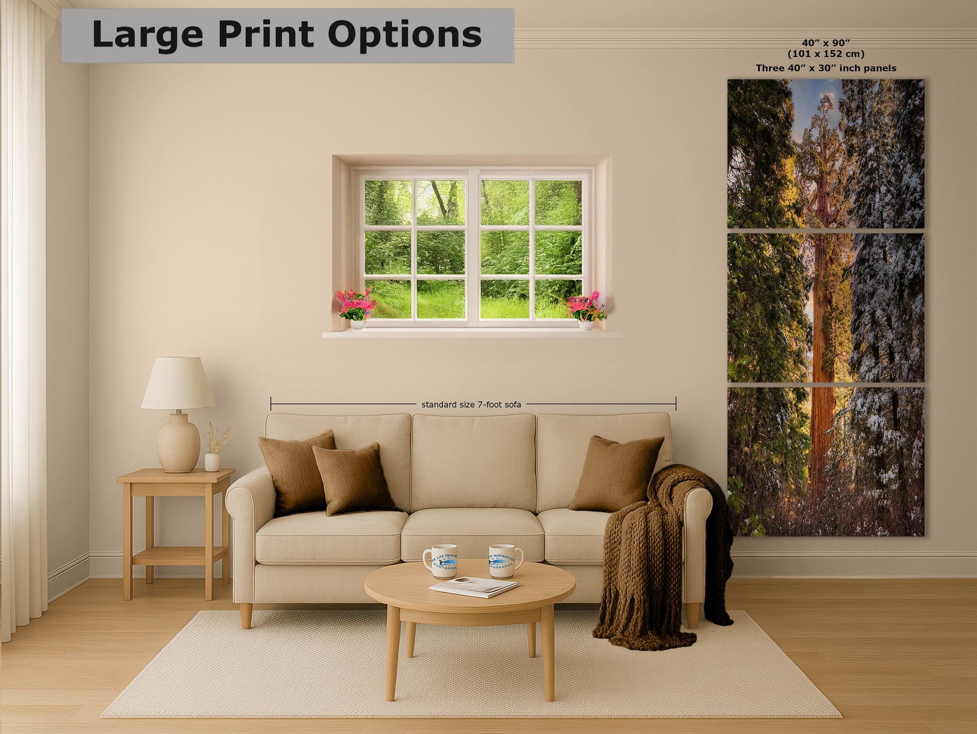 Bring the tranquil beauty of the outdoors into your home or workspace with this stunning giant sequoia tree forest picture nature photo.