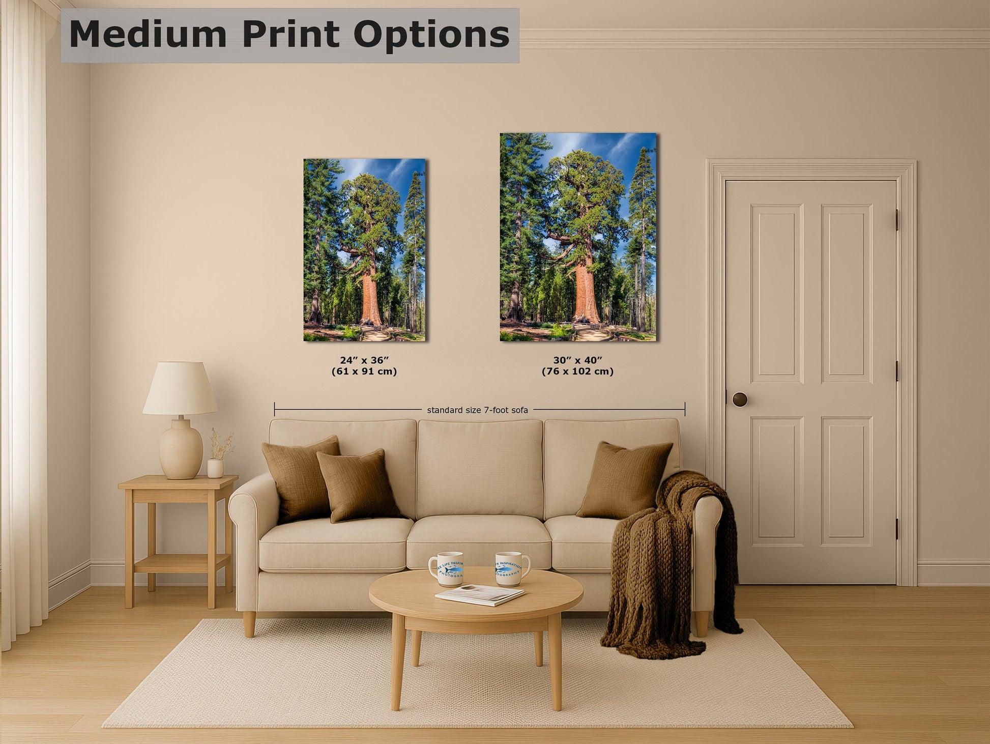 - High-resolution print capturing the iconic giant sequoia tree forest