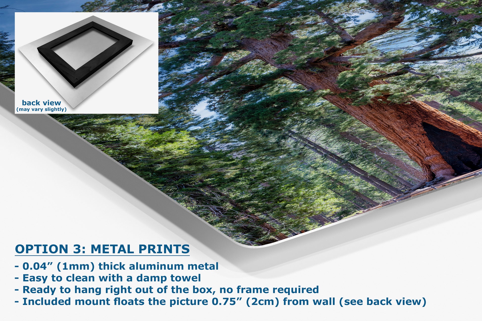 - Floating metal art: 0.04" (1mm) thick specialty coated aluminum metal includes a mount that floats the picture 0.75" (2cm) from your wall