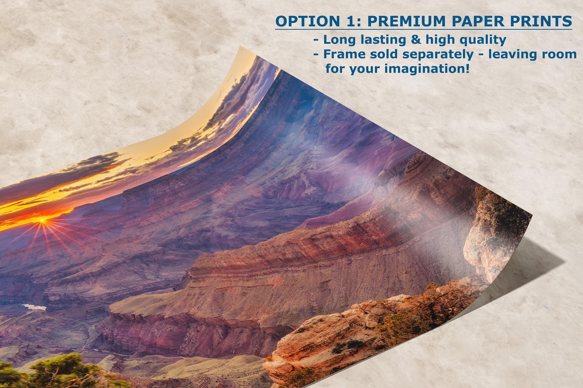 - High-quality print of the Grand Canyon at sunset with vibrant, true-to-life colors