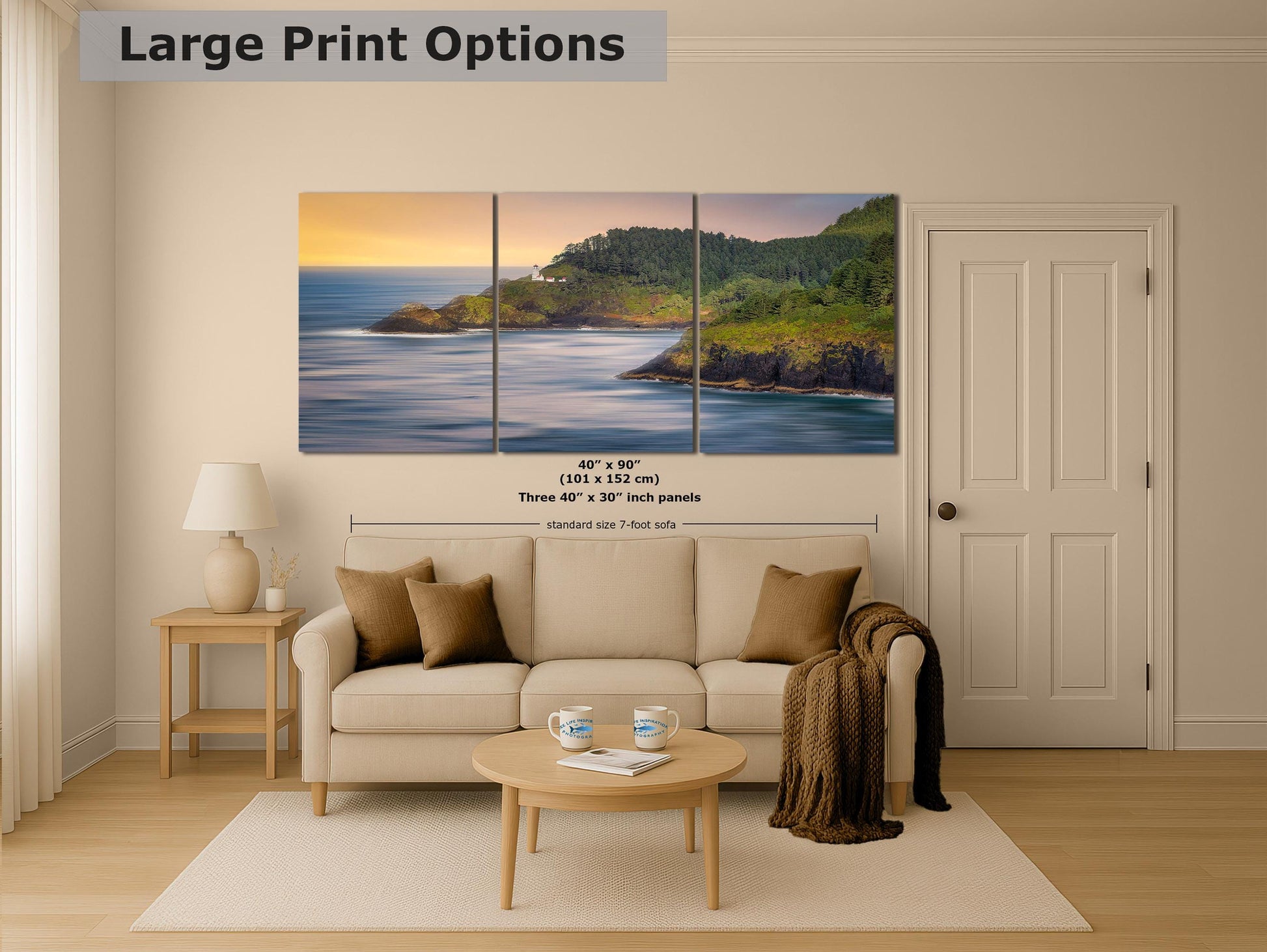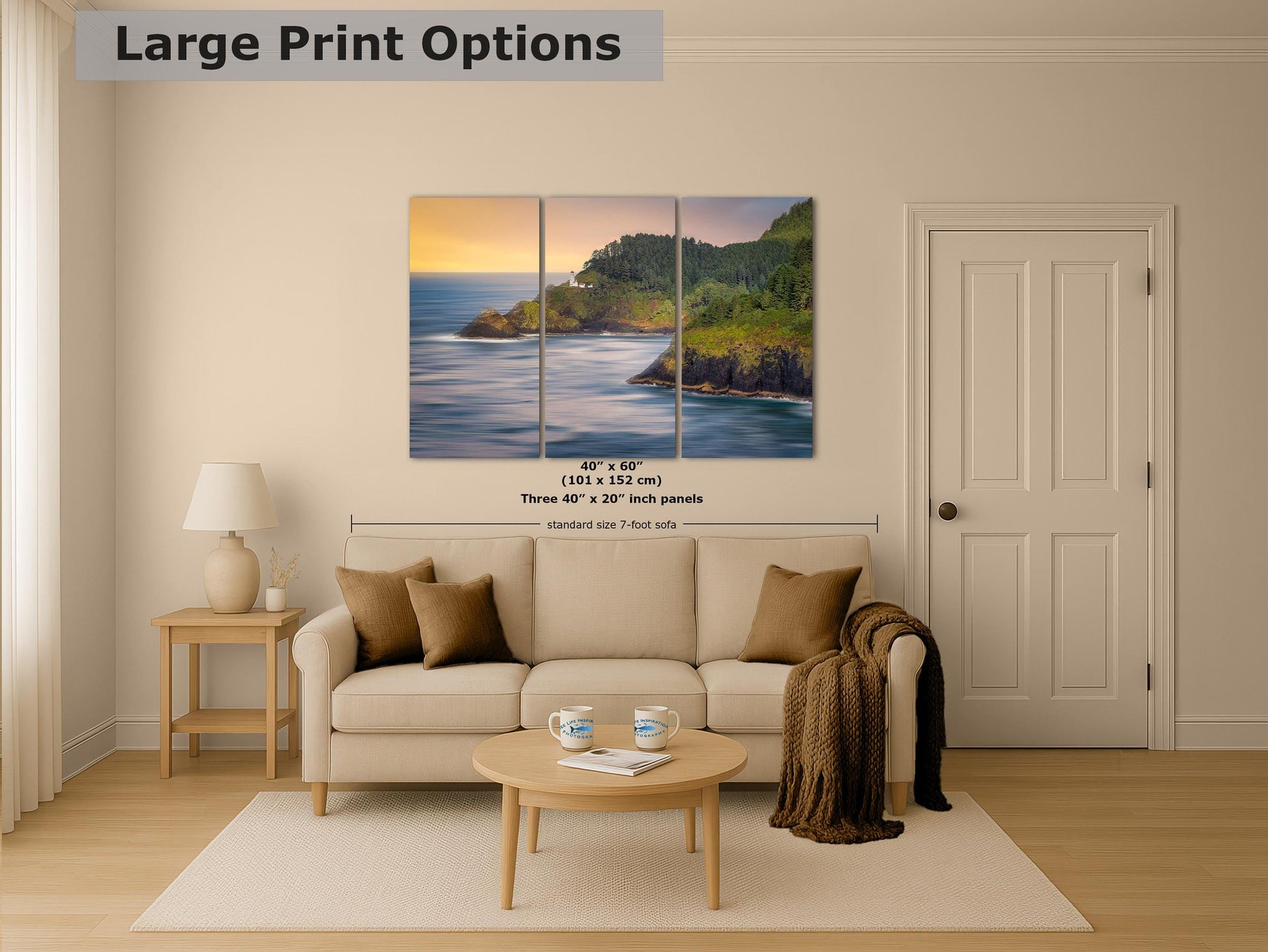 Bring the stunning beauty of the Oregon coast into your home or workspace with this captivating Oregon coast ocean picture featuring the iconic Heceta Head Lighthouse.