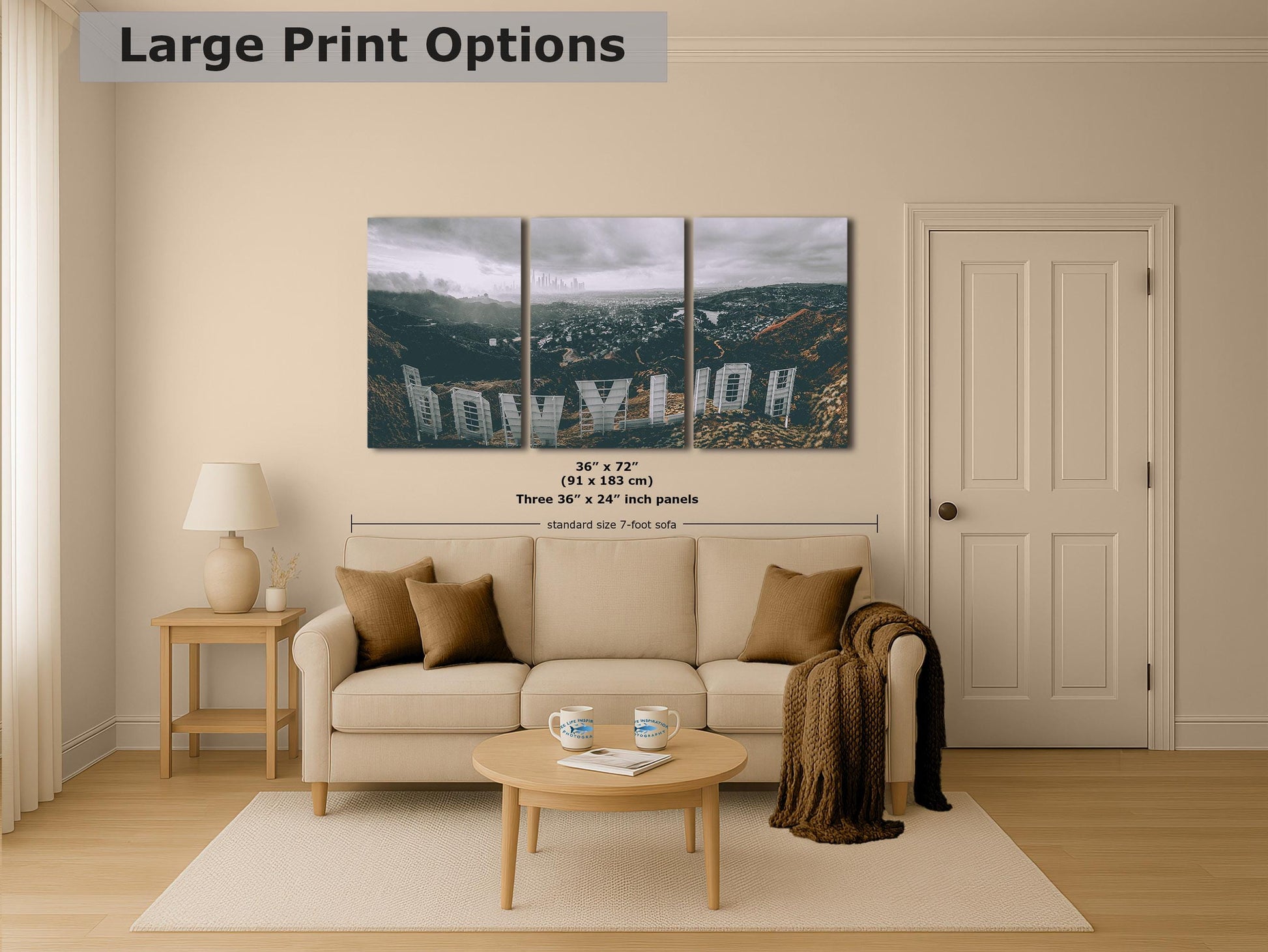 Hollywood Sign Los Angeles Skyline Retro Southern California Cityscape Urban Decor for Home or Office
