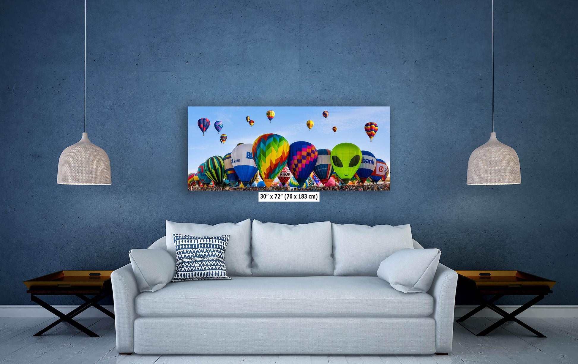Hot Air Balloon Festival Mass Ascension Panorama Photo Lift Off | Albuquerque New Mexico Balloon Fiesta Wall Art | Office, Cubicle & House Decor