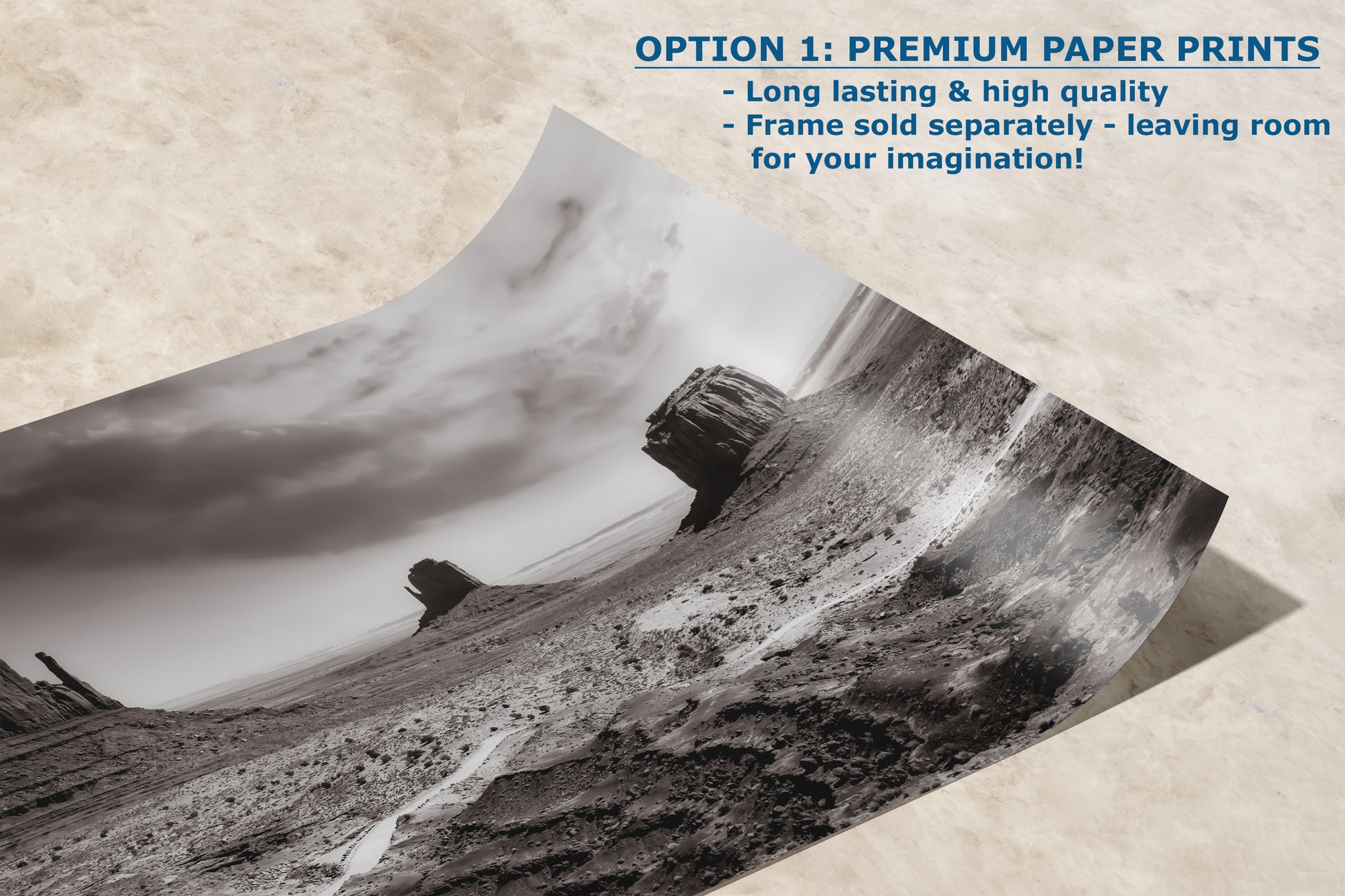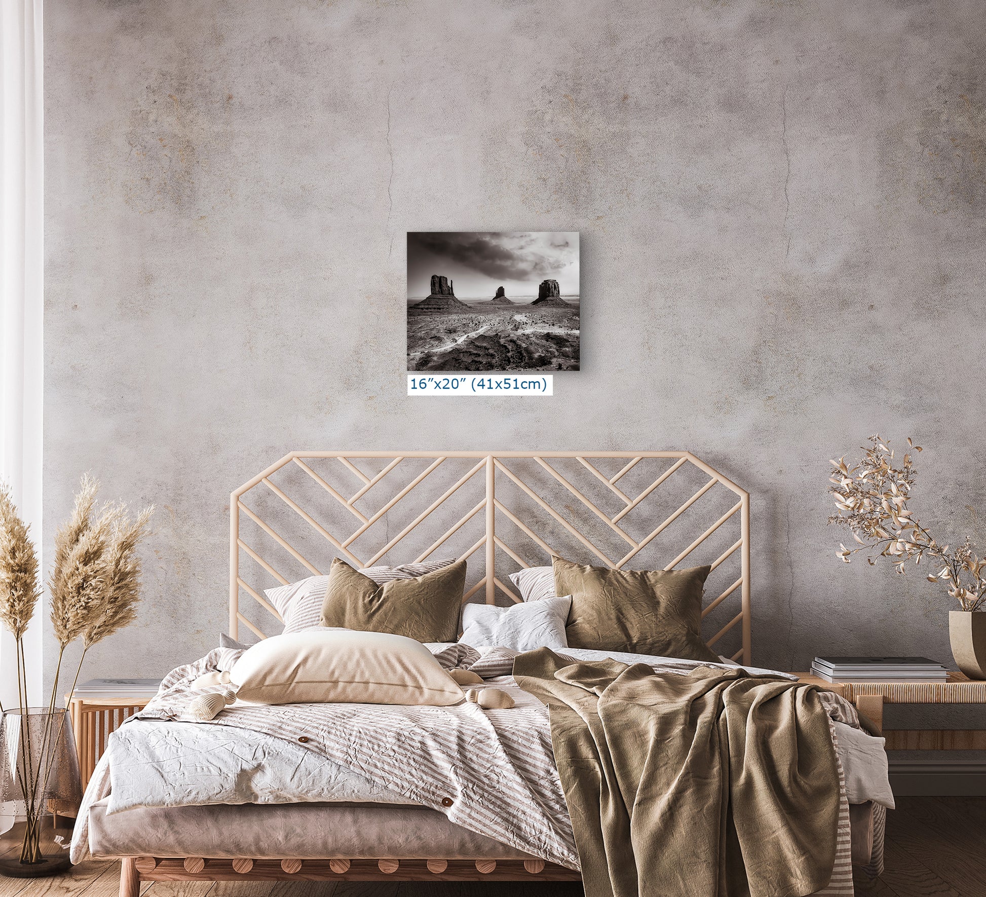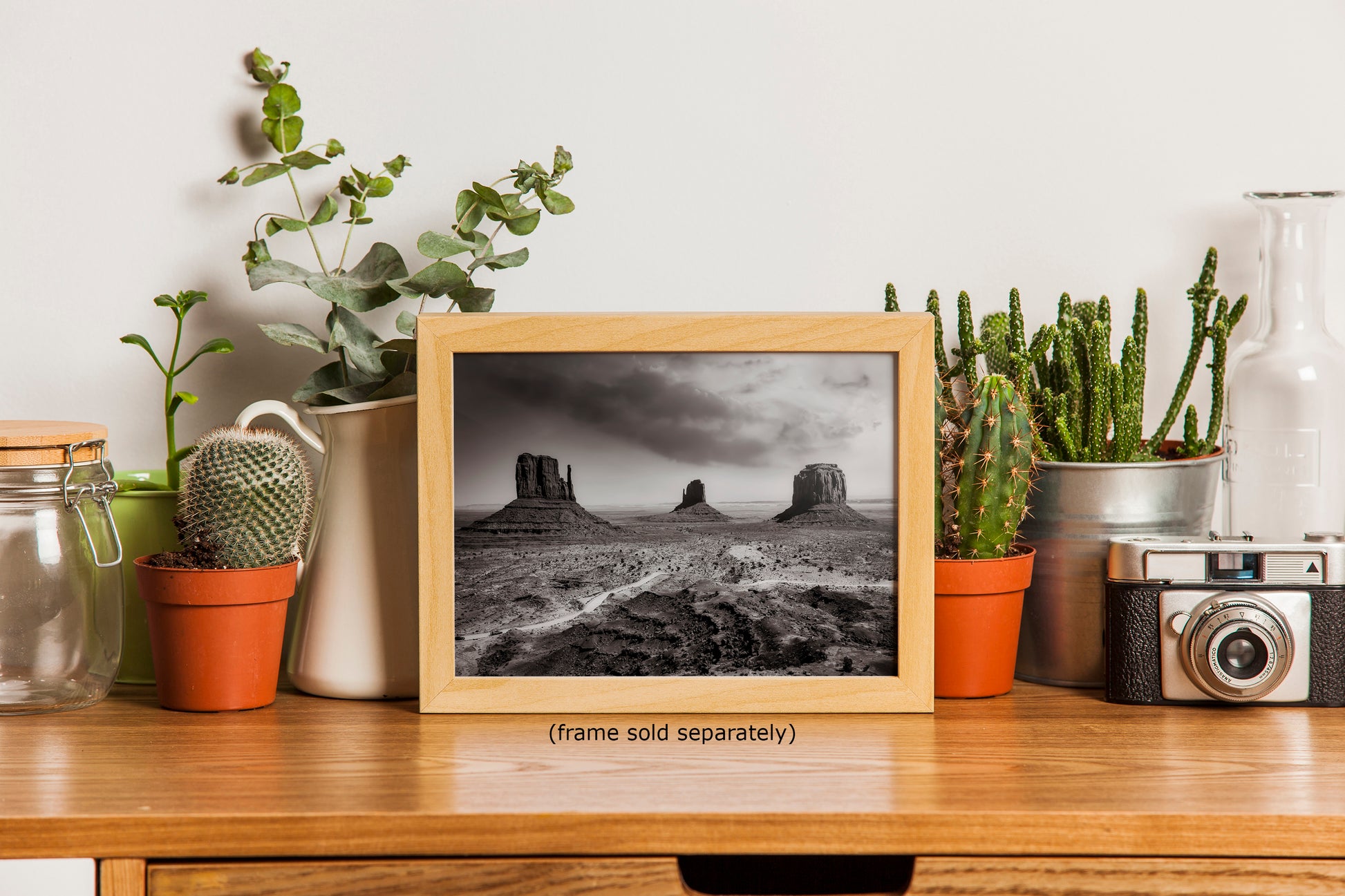 If you're looking for decor that exudes calm and elegance, this black-and-white Monument Valley print offers the perfect solution. It brings a sophisticated, timeless aesthetic to any room, creating a grounding effect that complements a range of styles.