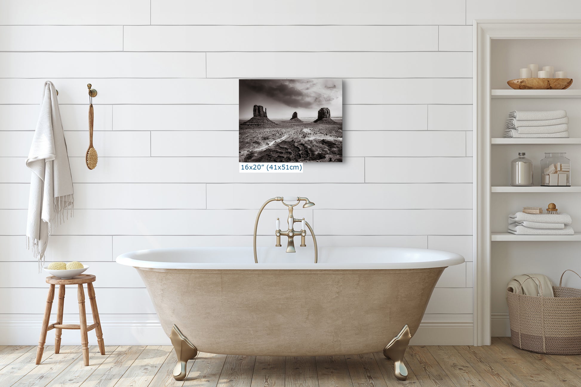 Elegant Monochrome Landscape: The classic black-and-white style adds sophistication, transforming Monument Valley's desertscape into an artful, minimalist statement piece.