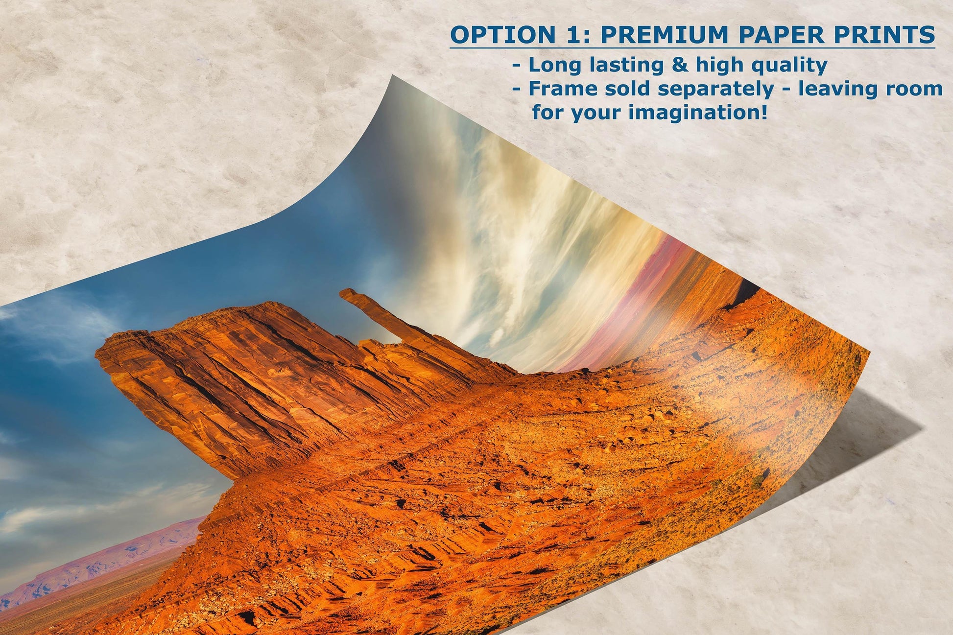 If you feel boxed in by urban life or need a visual escape, this Monument Valley print is the perfect solution. It adds a grounding, natural presence to your decor, bringing the peaceful and timeless beauty of the desert into your everyday life.