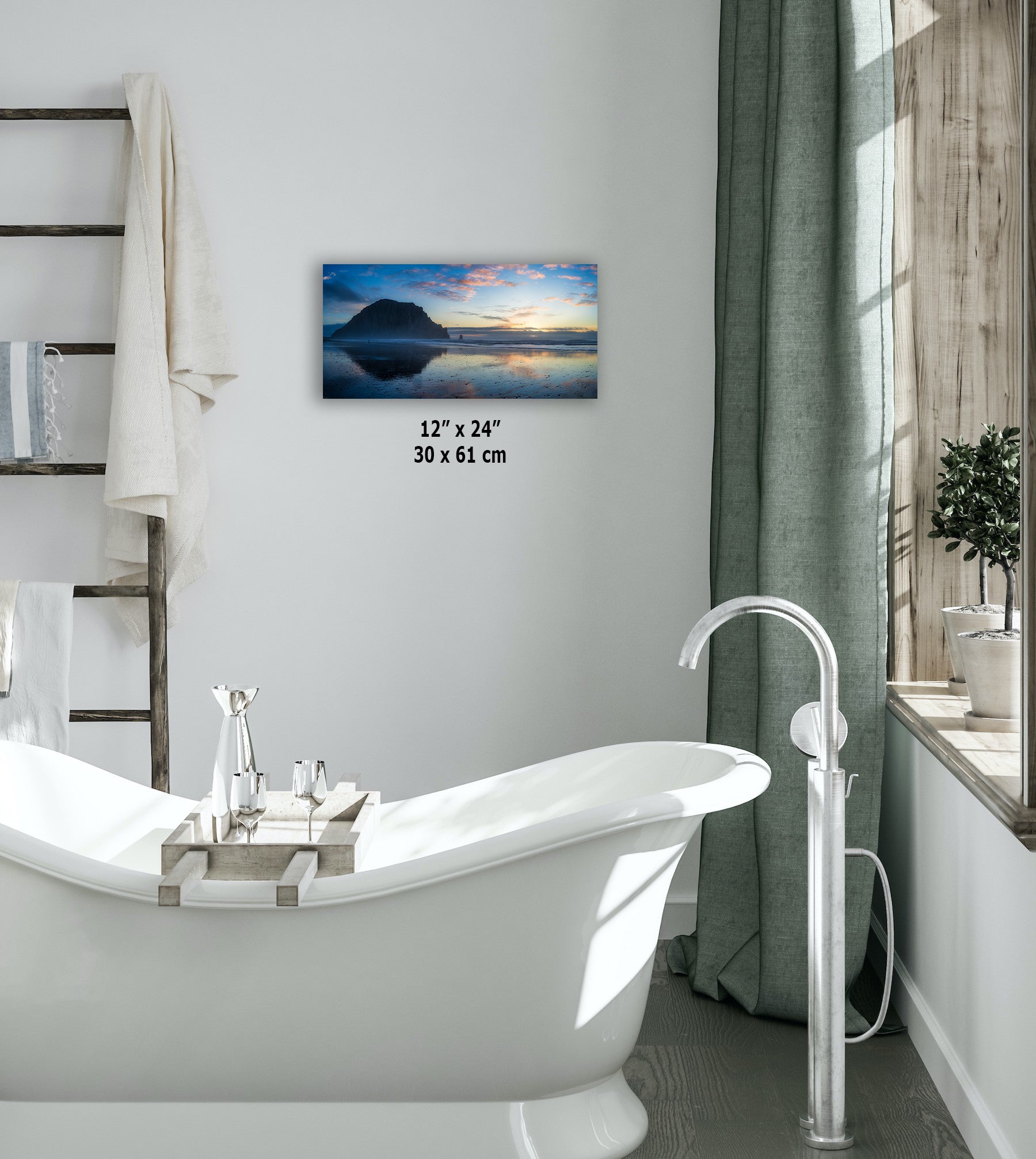 Bring the calming influence of the ocean into your home or workspace today with this Morro Bay, California Coastline ocean picture. Let the gentle waves and majestic rock remind you of the beauty and peace found along California's coast!