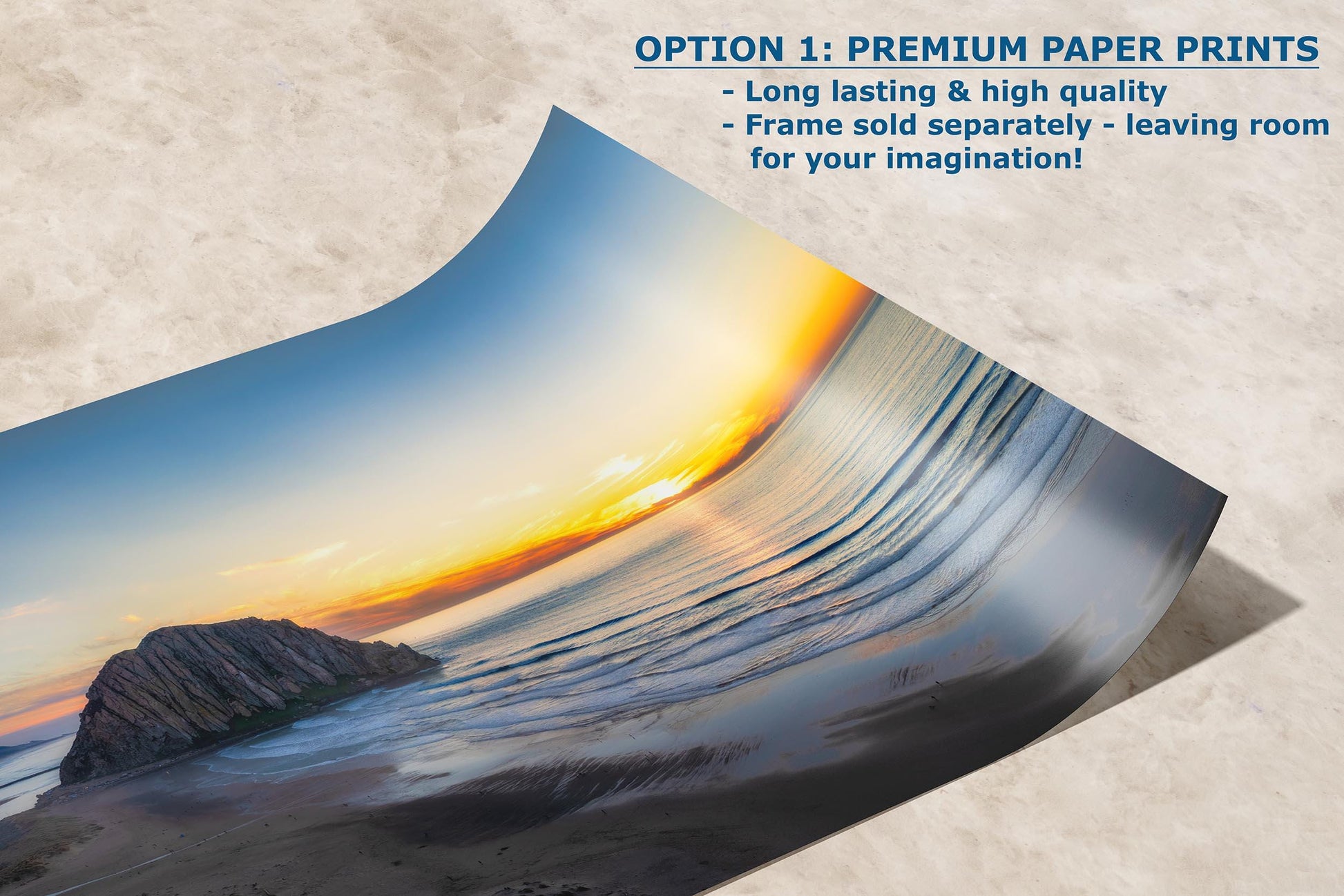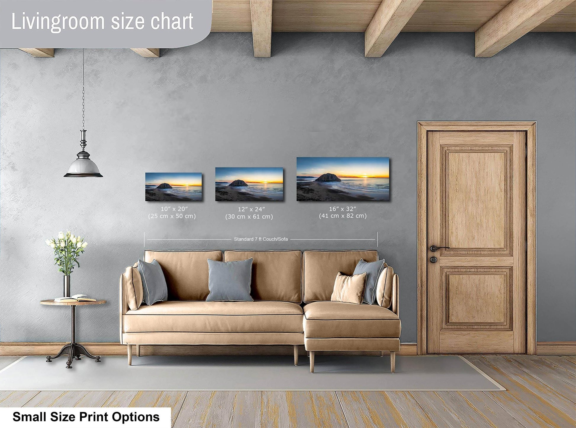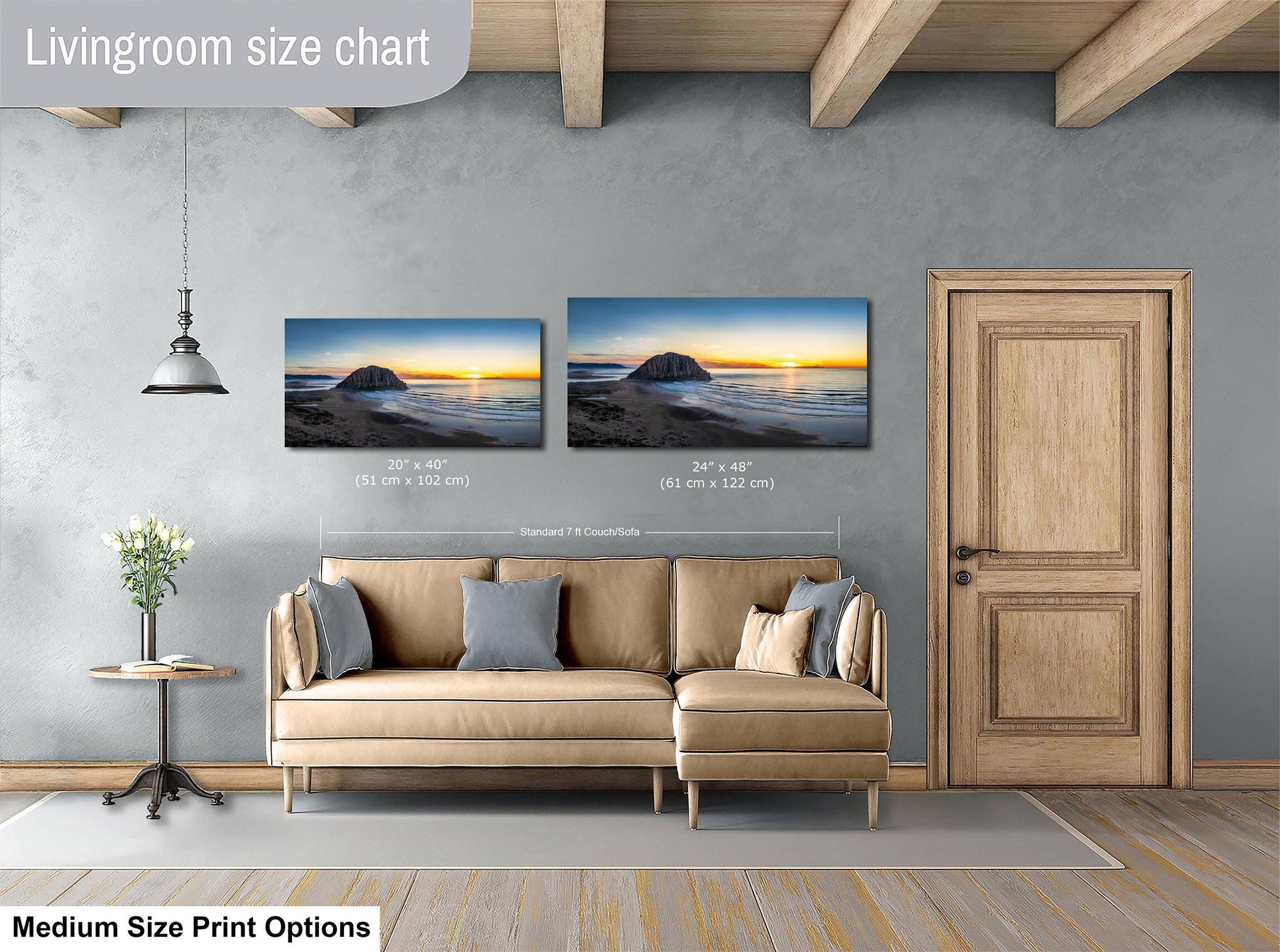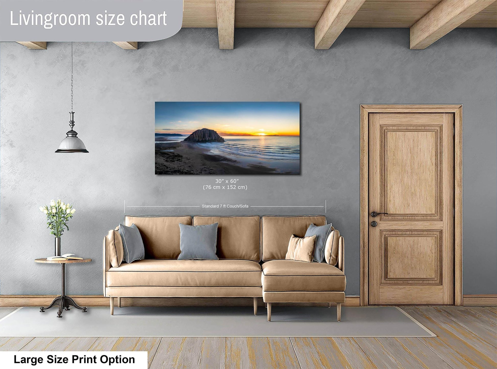 Perfect for adding a calming touch to your dorm room, office, or home decor, this nature photo showcases Morro Rock against the vibrant hues of a coastal sunset. Whether you're seeking relaxation artwork, meditation decor, or a striking piece for your dining area wall, this coastal artwork brings the tranquility of the ocean into your space.