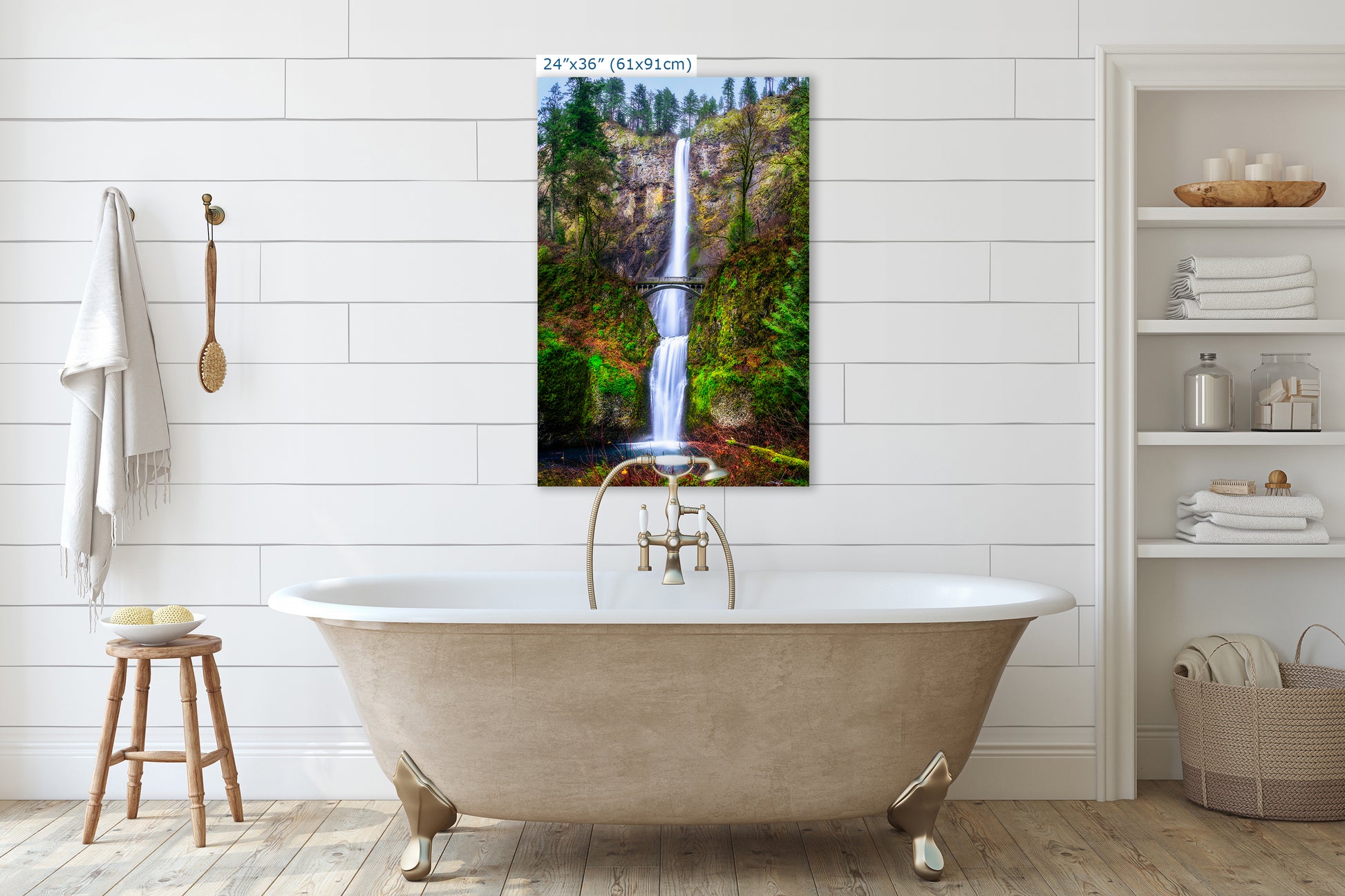 This Pacific Northwest art piece captures the powerful cascade of Multnomah Falls in the Columbia River Gorge, making it perfect for anyone seeking relaxation wall art or serene home decoration.