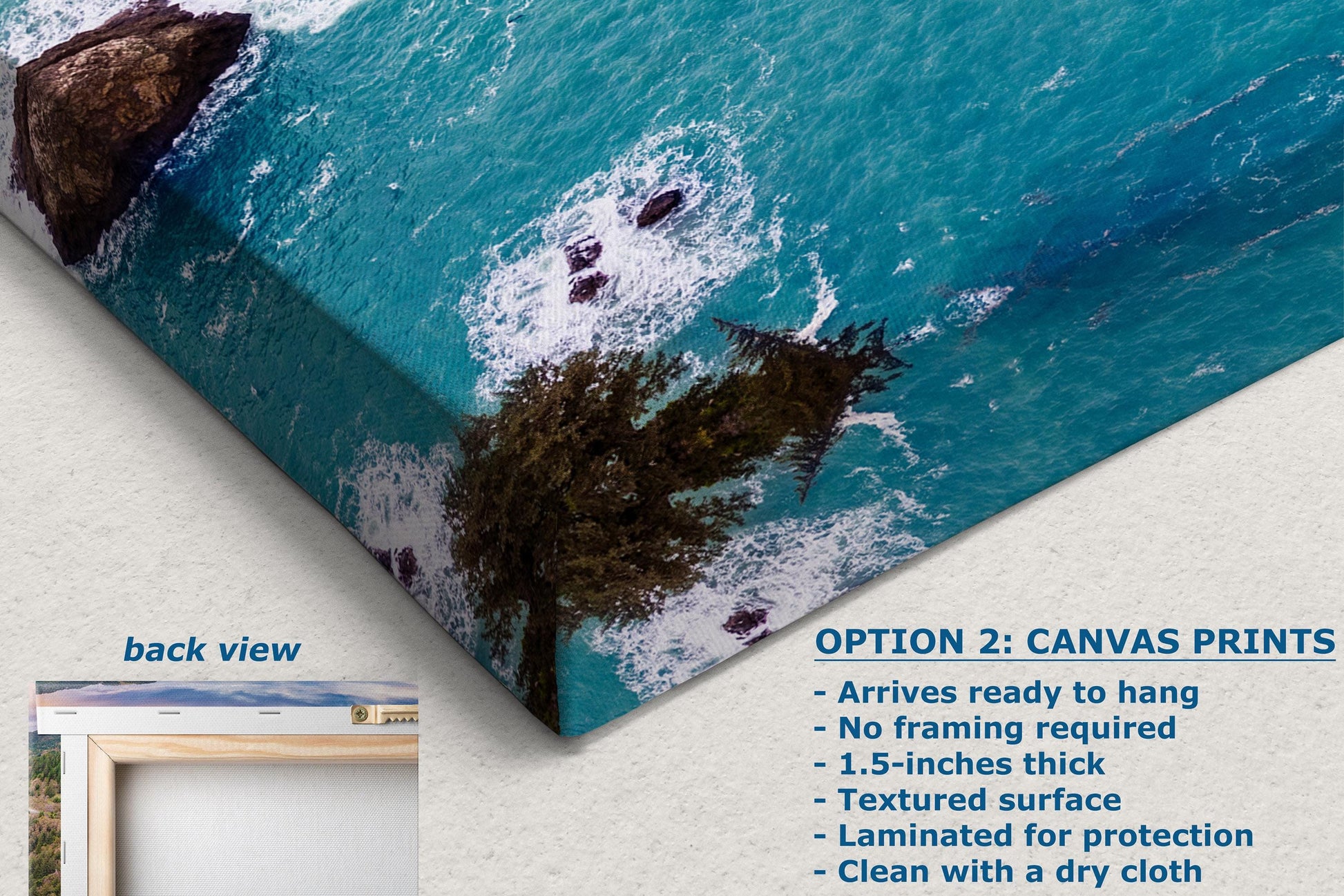 Aerial Oregon Coast Ocean Picture, Pacific Northwest Nature Photo Relaxation Artwork for Meditation, Apartment, Office & House Décor