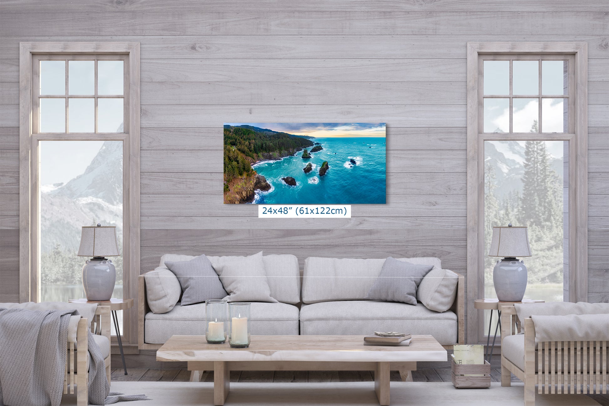 Let this panoramic canvas print of the Oregon coast transform your home into a sanctuary of beauty and inspiration. Secure this piece of paradise today and start every day with a spectacular view!
