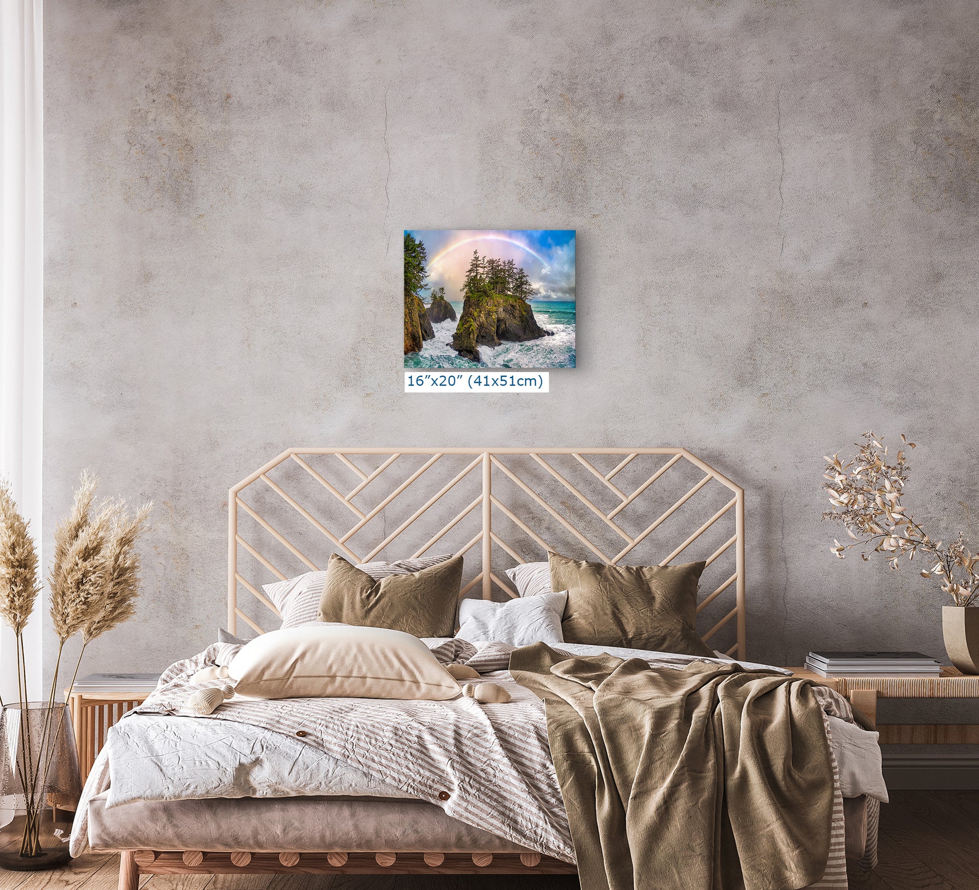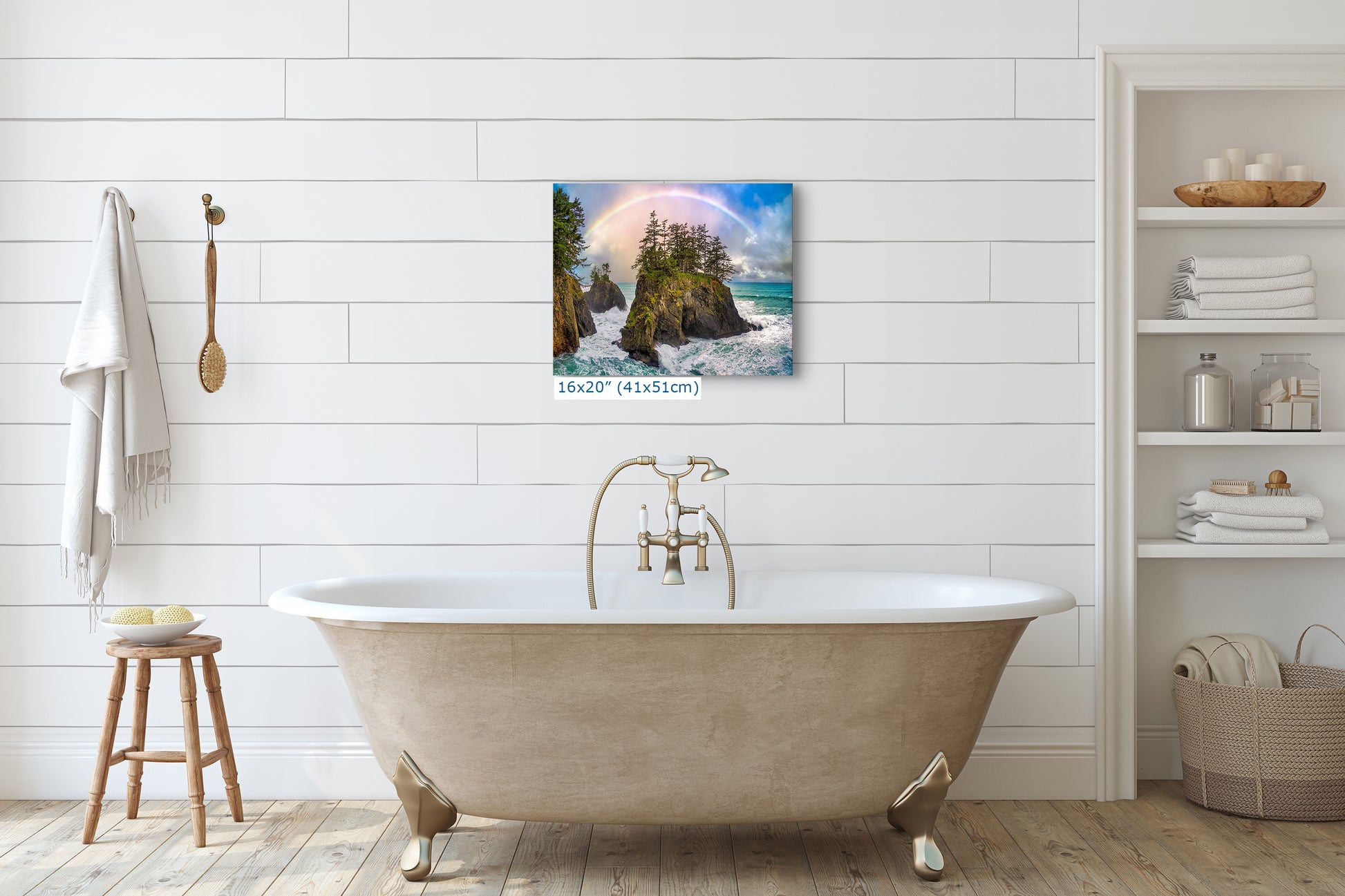 Oregon Coast Ocean Picture, Pacific Northwest Rainbow Nature Photo Relaxation Artwork for Meditation, Apartment, Office & House Decor