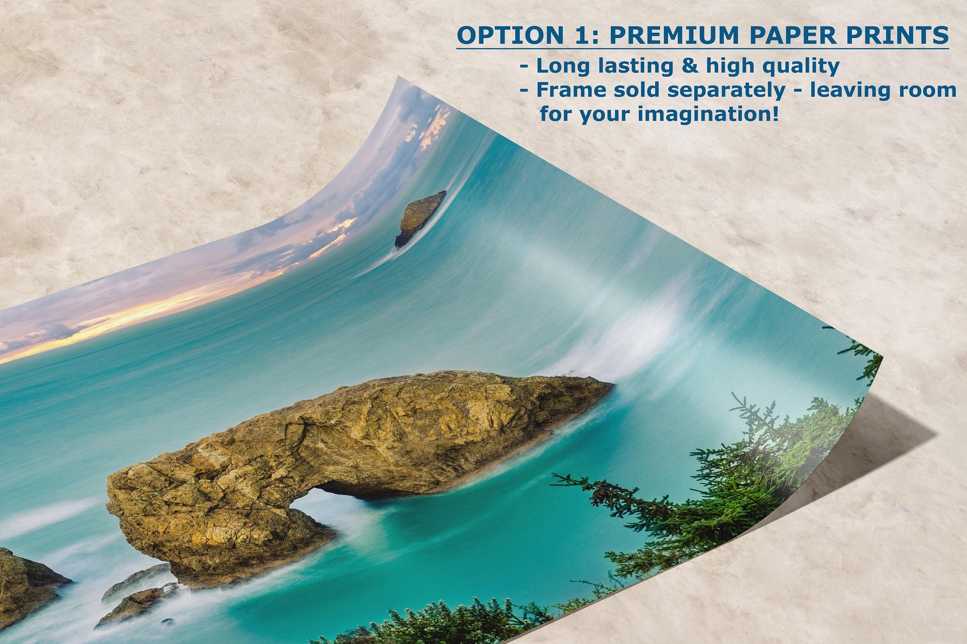 Featuring the iconic sea arches of Oregon’s rugged shoreline, this nature wall art captures the tranquil yet majestic essence of the Pacific Northwest. The vivid turquoise waters, serene sky, and natural rock formations create a captivating landscape that transports you to the peaceful seaside whenever you gaze upon it.