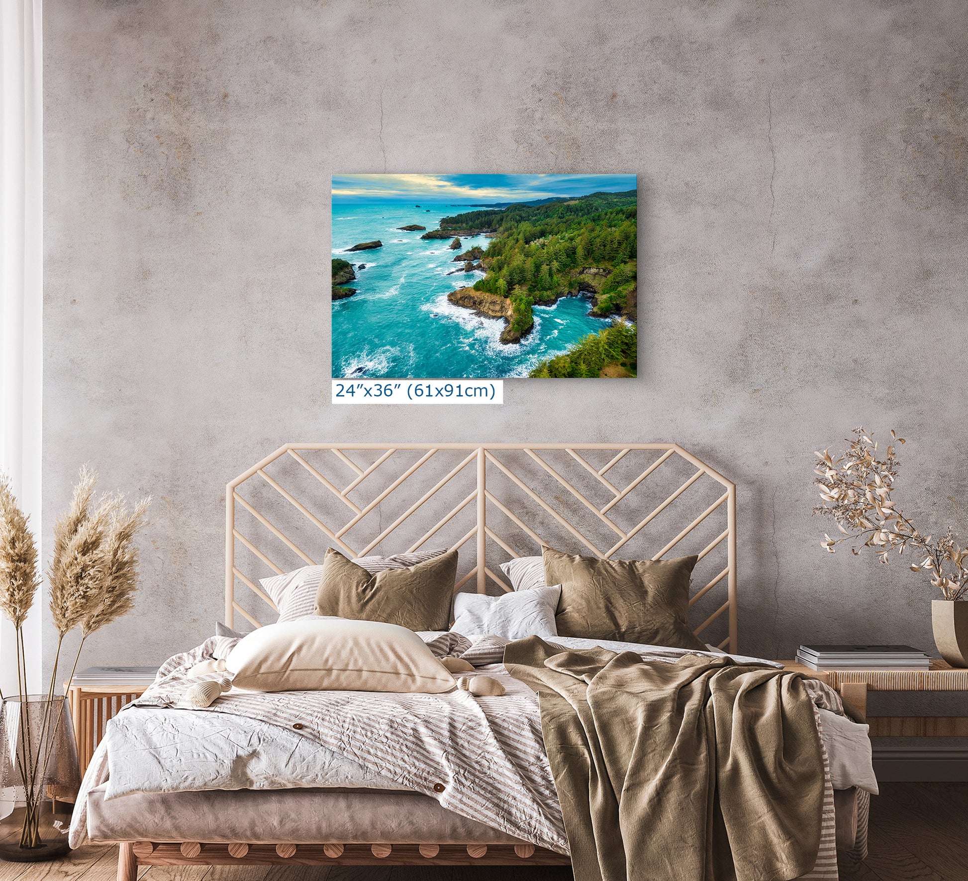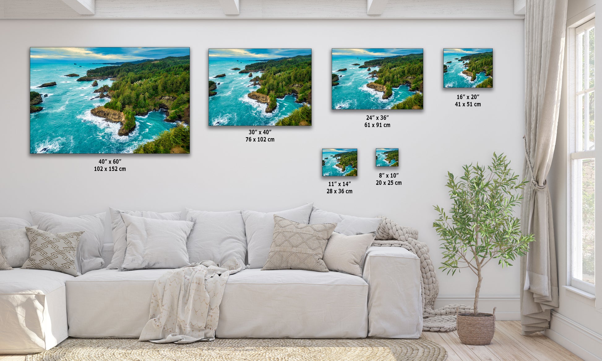 This Oregon coast ocean picture captures the breathtaking beauty of the Pacific Northwest, offering a serene and calming view that transforms any room into a peaceful retreat.