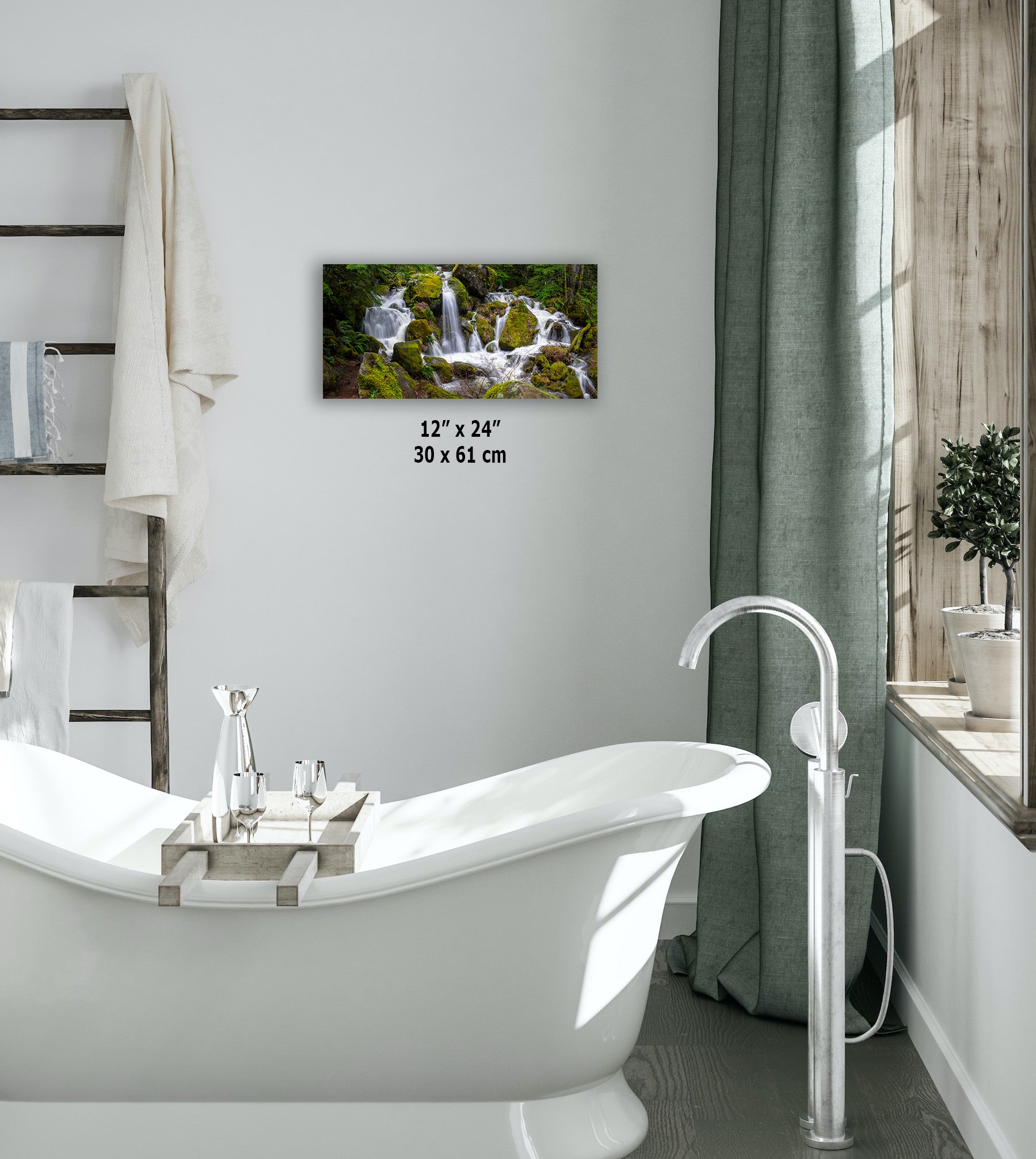 Oregon Pacific Northwest Waterfall Picture Nature Photo Relaxation Artwork in Bohemian Style for Meditation, Office, Apartment, House Decor
