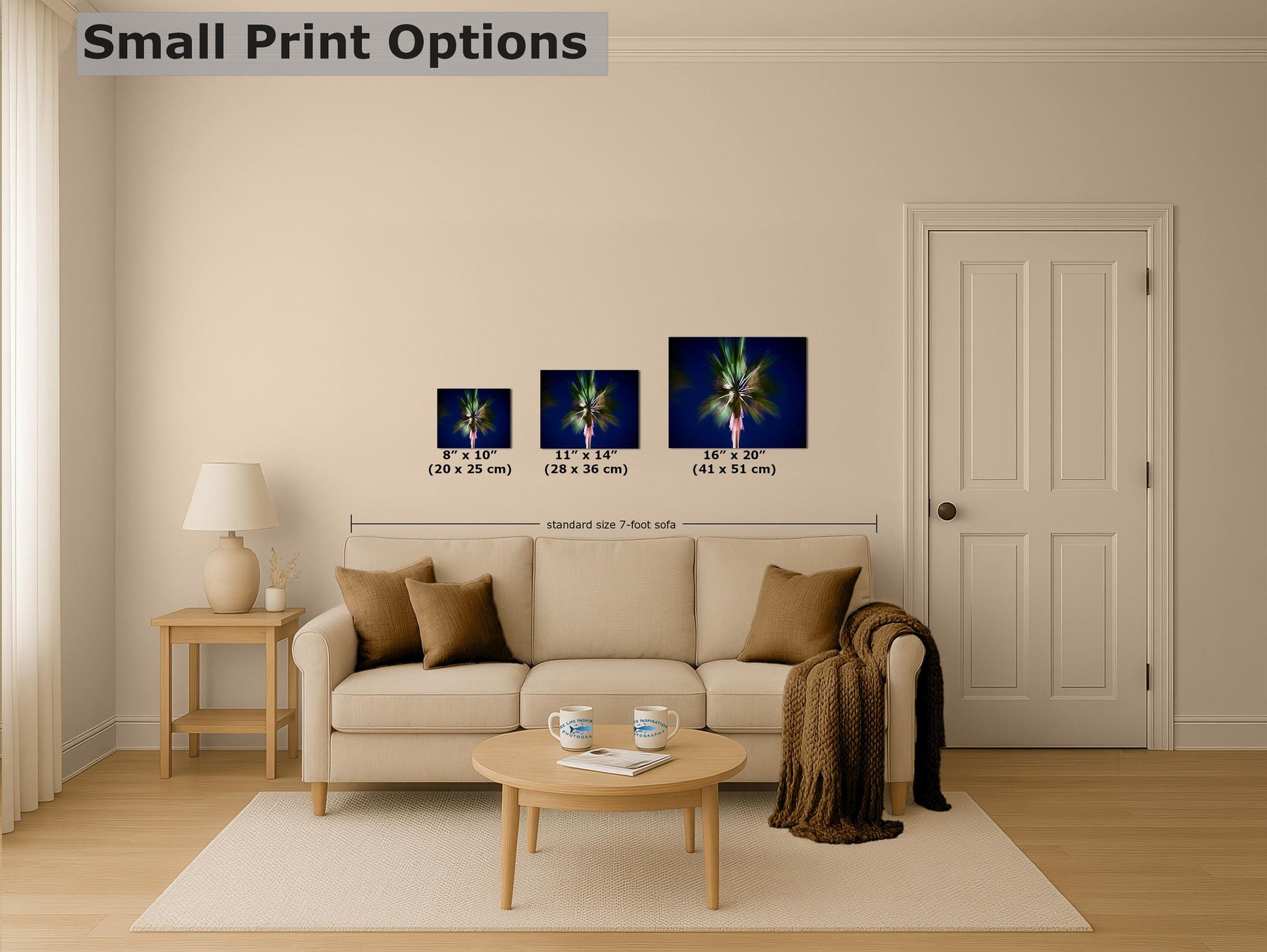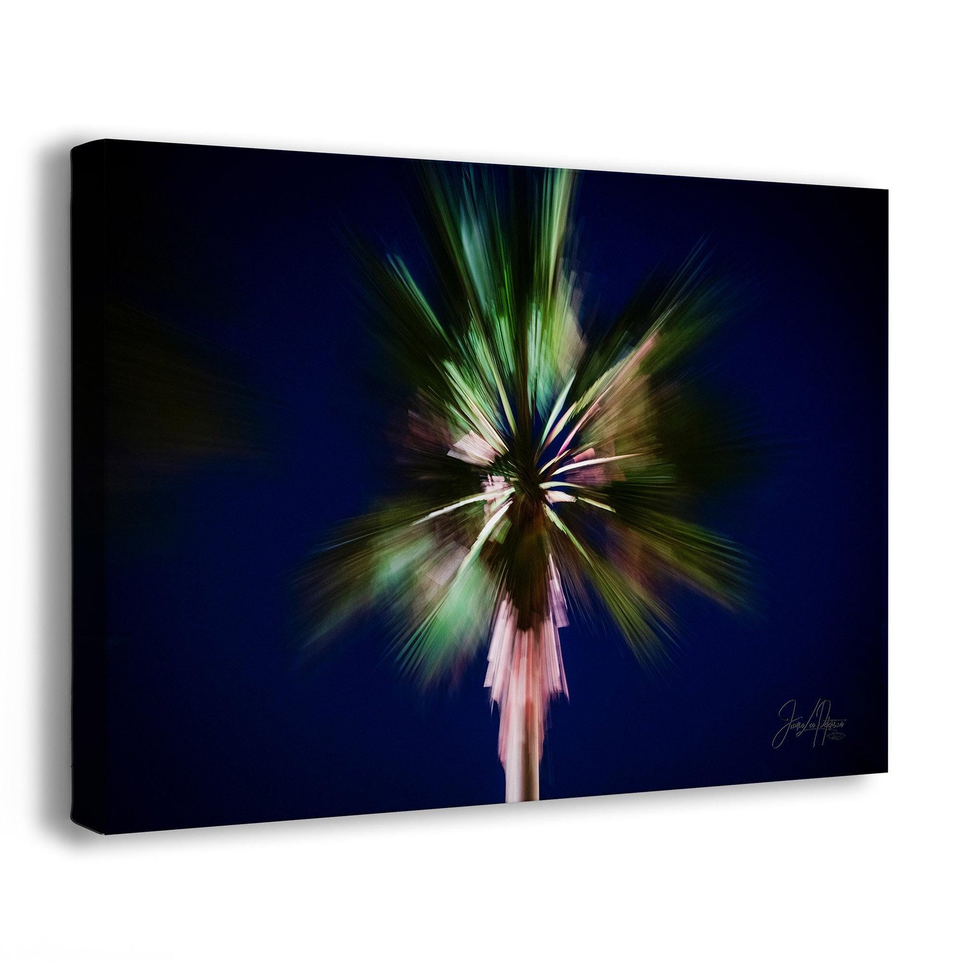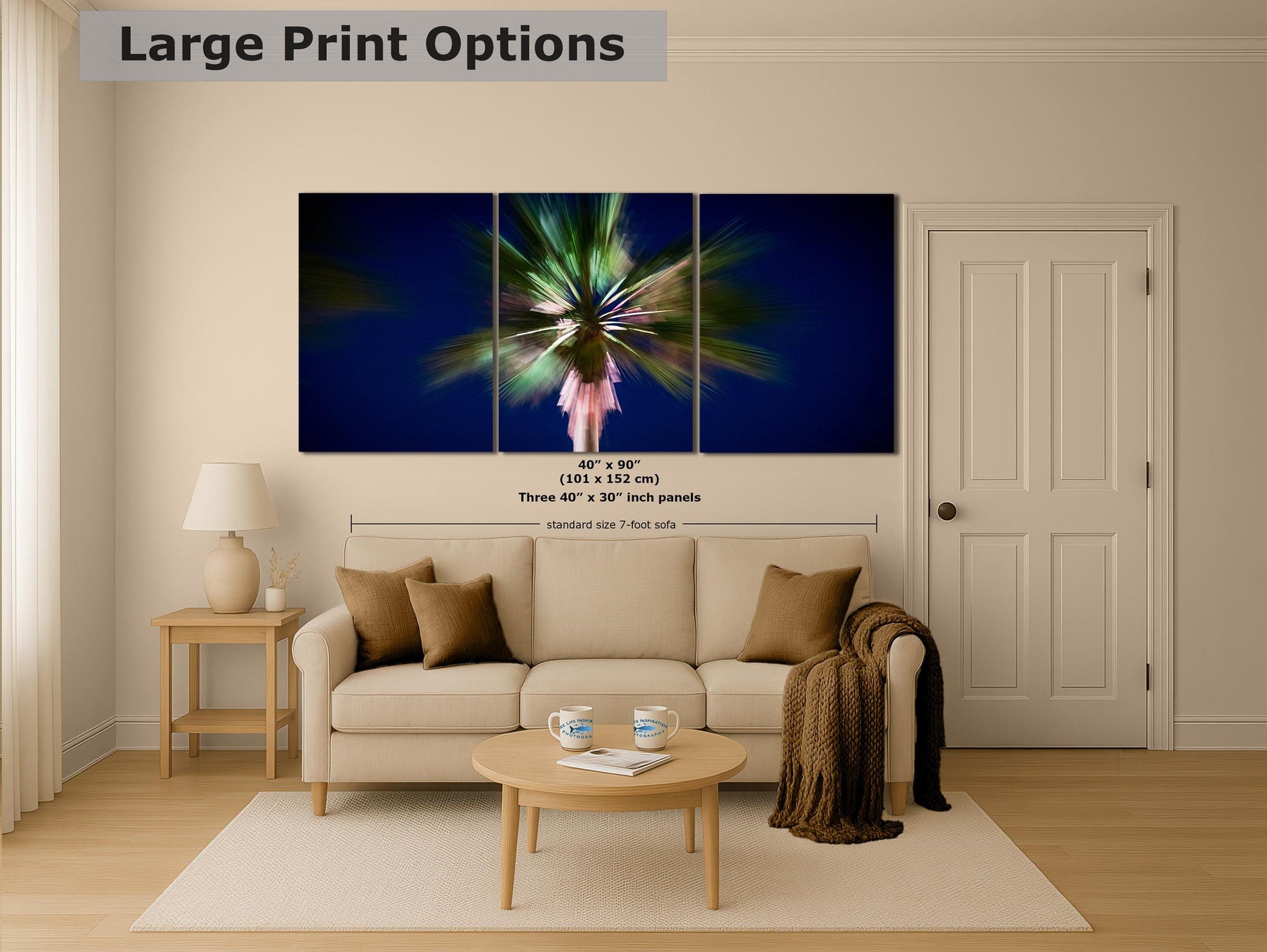 Bring vibrant energy and serene natural beauty into your space with this stunning impressionist art print featuring a palm tree captured using a unique motion blur technique.