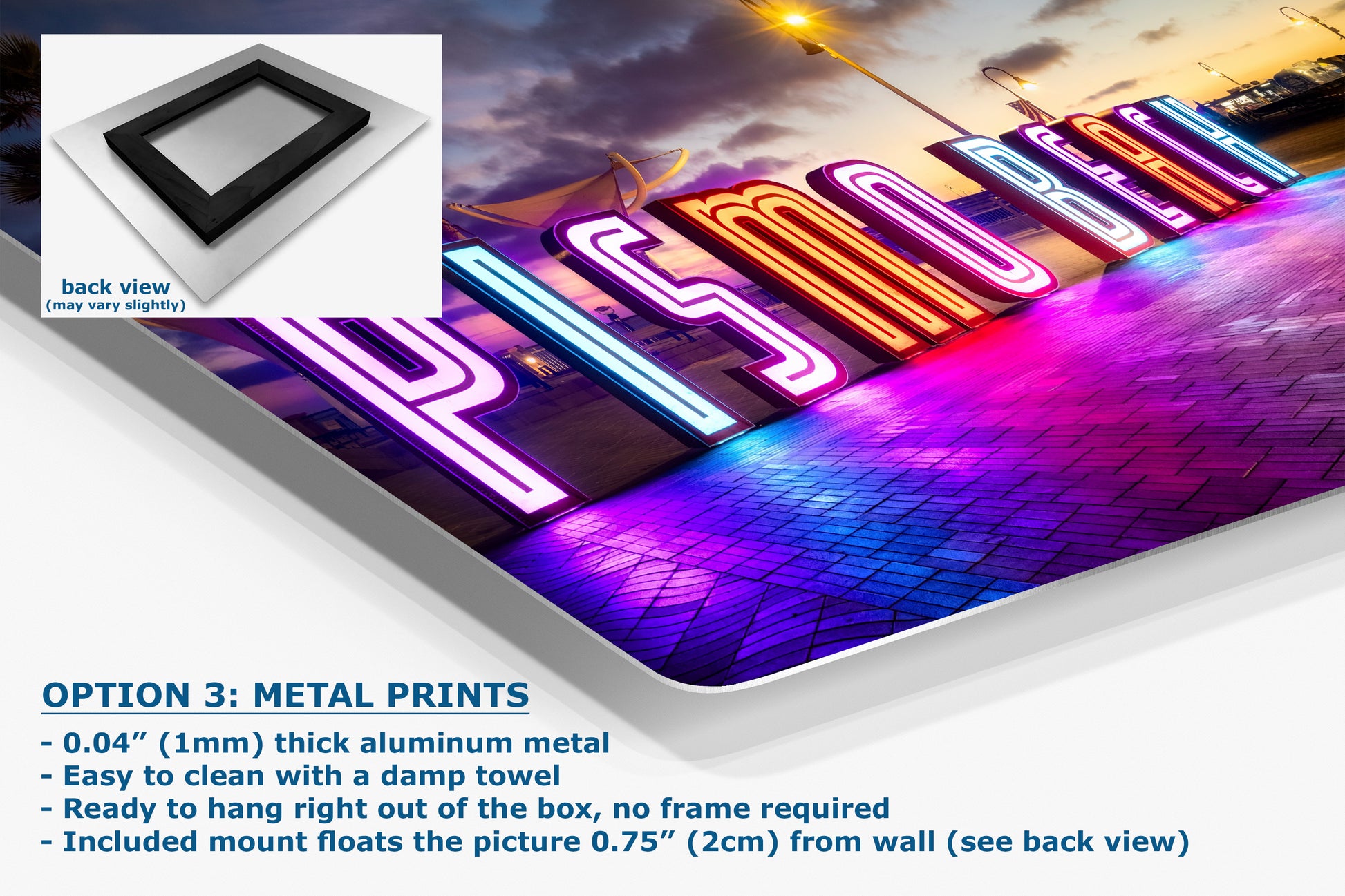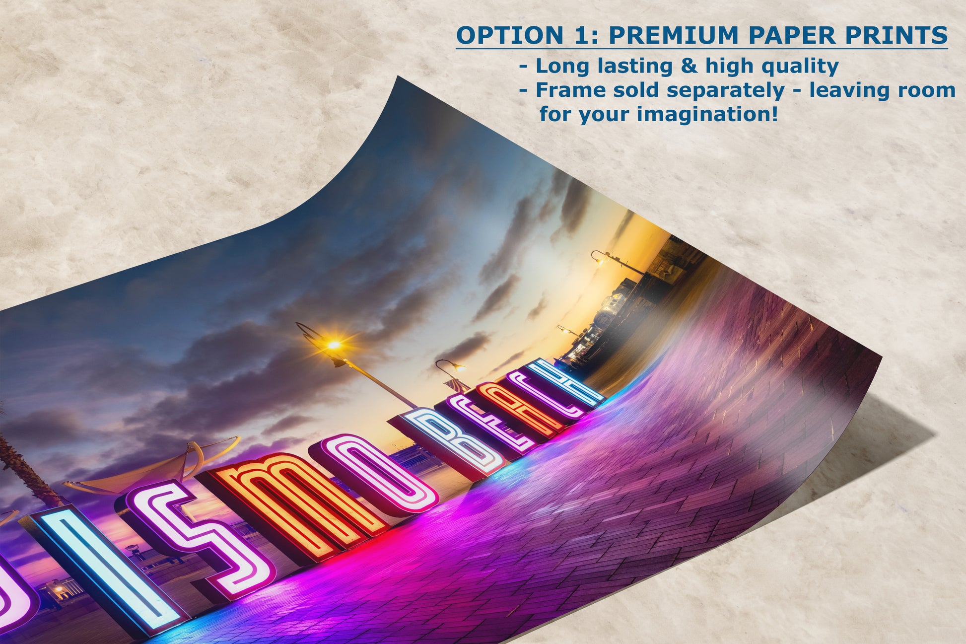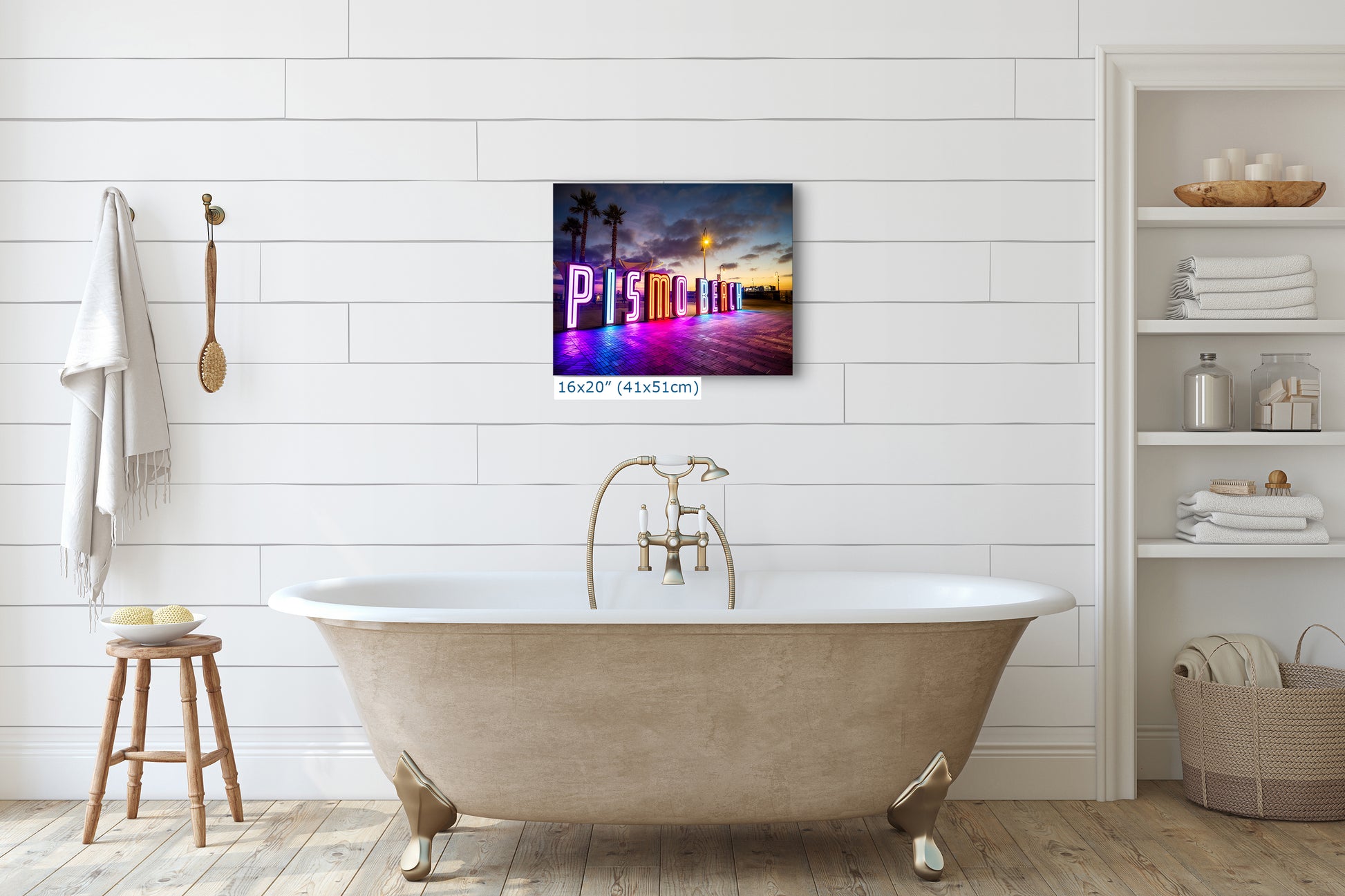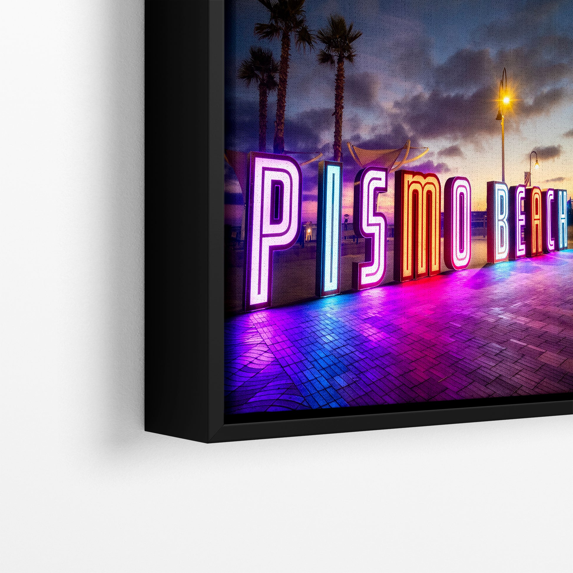Capture the electrifying charm of the Pismo Beach iconic neon sign at night. This vibrant piece brings a slice of California cool directly into your home or office, illuminating your space with its radiant colors and dynamic energy.