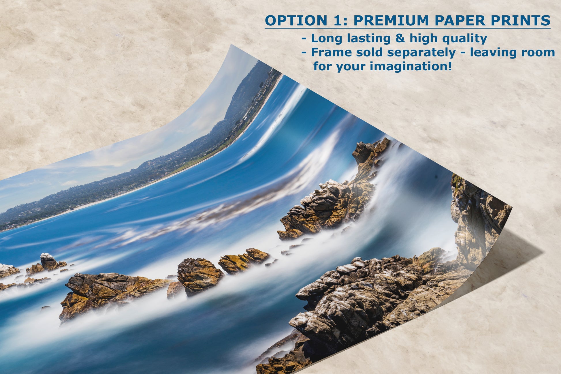 Designed to bring the calming essence of nature indoors, this high-quality print is ideal for those who love the California coastline or want to incorporate ocean-inspired decor into their home or workspace. The vibrant colors and detailed scenery make it a versatile piece, suitable for dining areas, bedrooms, or as a statement piece in a gallery wall.