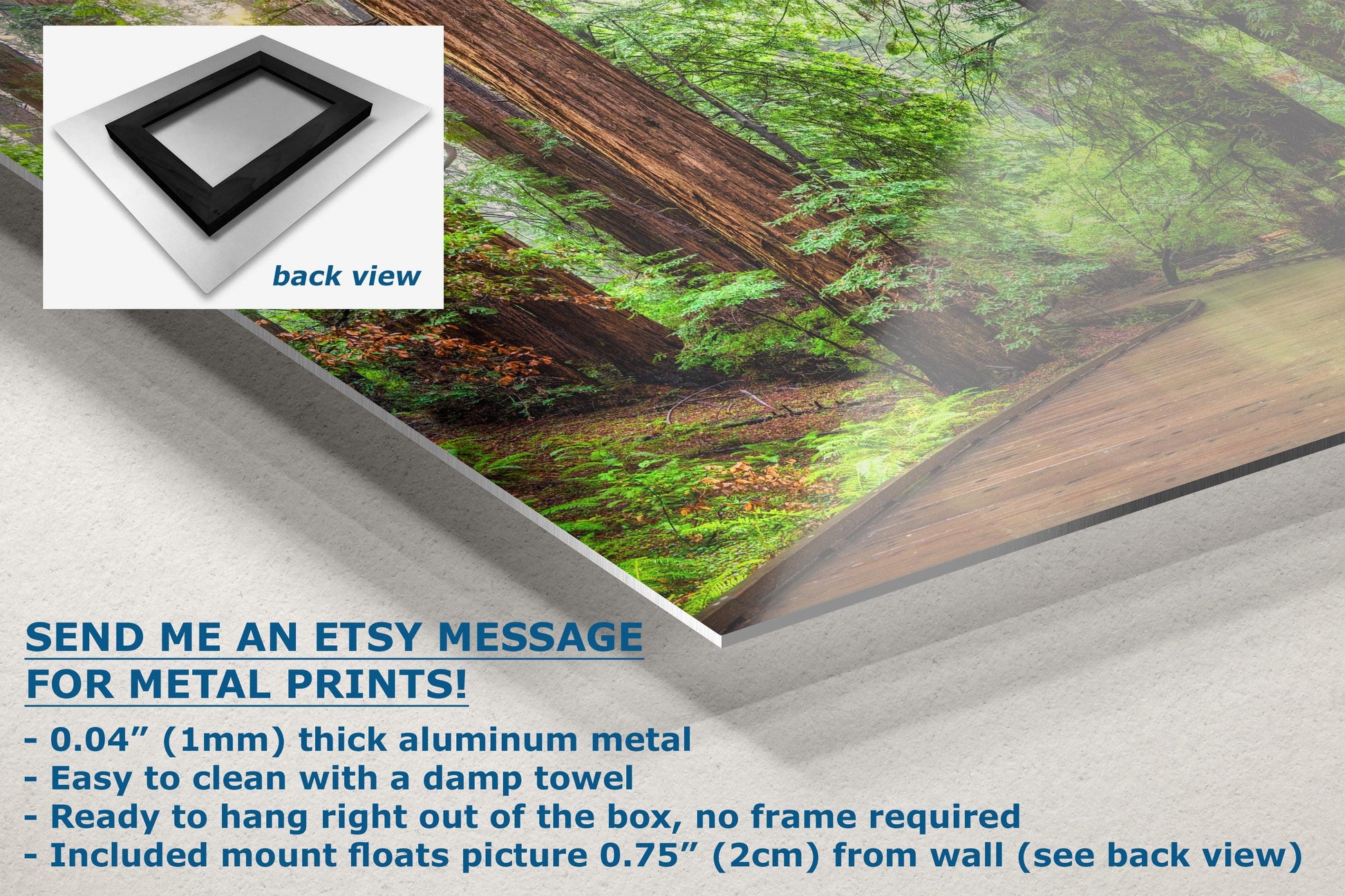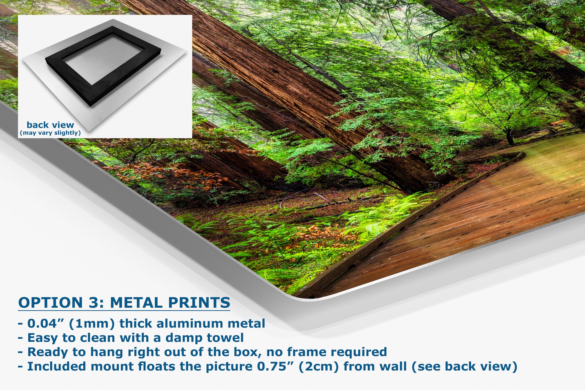 - Floating metal art: 0.04" (1mm) thick specialty coated aluminum metal includes a mount that floats the picture 0.75" (2cm) from your wall
