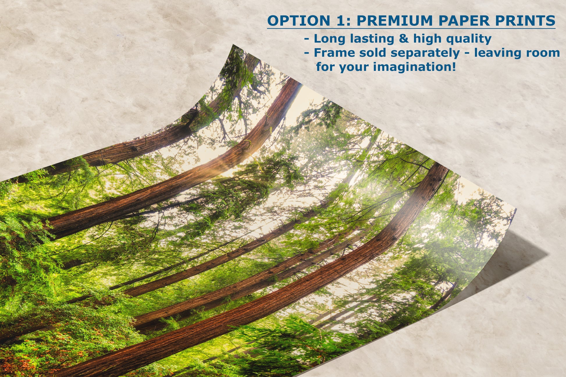 Capturing the majestic redwoods standing tall amidst lush greenery, this wall art invites serenity and calmness into any room. Perfect for forest bathing enthusiasts, meditation corners, or as a thoughtful gift for nature lovers, this high-quality print transforms your home or office into a peaceful sanctuary.