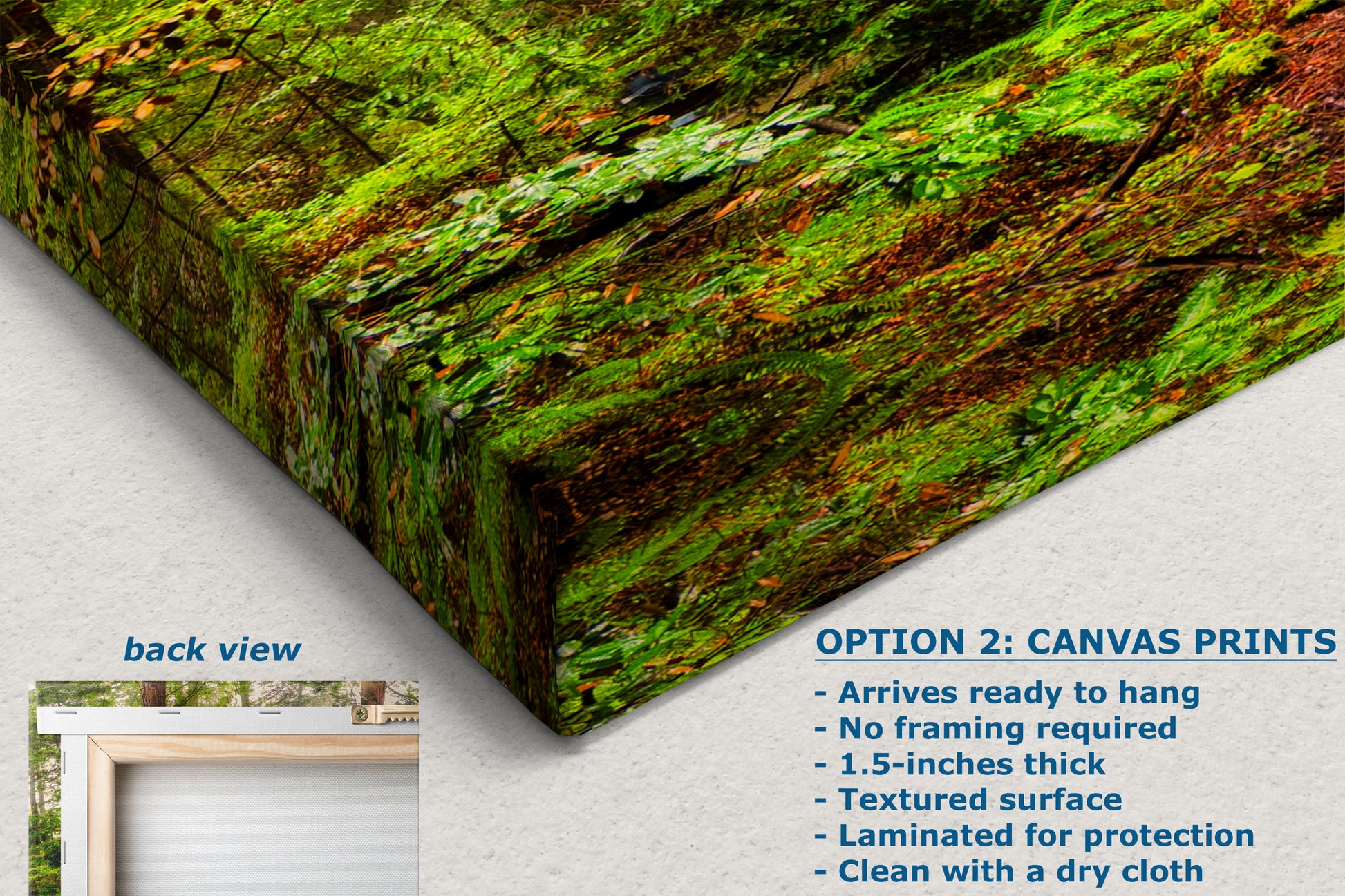 Whether you're decorating a living room, bedroom, or workspace, this calming forest scene adds a touch of earthy elegance and maximalist charm. The vibrant greens and towering redwoods create a refreshing focal point that inspires relaxation and mindfulness. An ideal nature gift for her or for anyone who appreciates the serenity of the forest, this artwork is a celebration of natural beauty and tranquility.