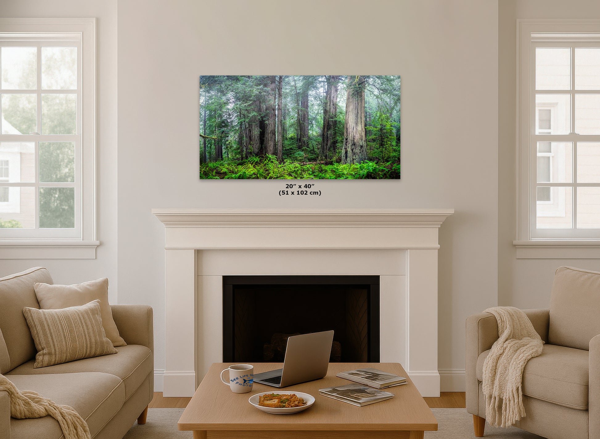 Designed to evoke relaxation and mindfulness, this giant canvas print showcases the beauty of California's iconic redwoods in their misty, enchanting environment. Whether you're creating a calming corner for meditation, enhancing your dorm room decor, or adding a touch of bohemian style to your living space, this forest picture complements a variety of aesthetics. It's also an ideal gift for nature enthusiasts and those seeking dopamine decor to boost their mood.