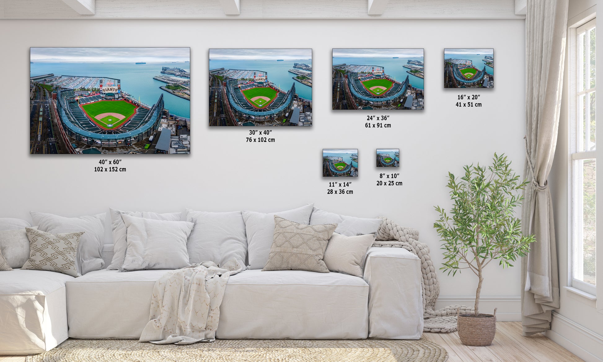 Celebrate your love for baseball and the iconic San Francisco waterfront with this stunning San Francisco Giants Baseball Stadium Oracle Park canvas print. Featuring a captivating aerial view of the legendary ballpark, this artwork beautifully captures the vibrant energy of game day against the backdrop of the sparkling Bay and Marina. Perfect for sports enthusiasts, collectors, or anyone who appreciates the blend of Major League Baseball with San Francisco’s scenic charm, this canvas adds a touch of coastal elegance to any space.