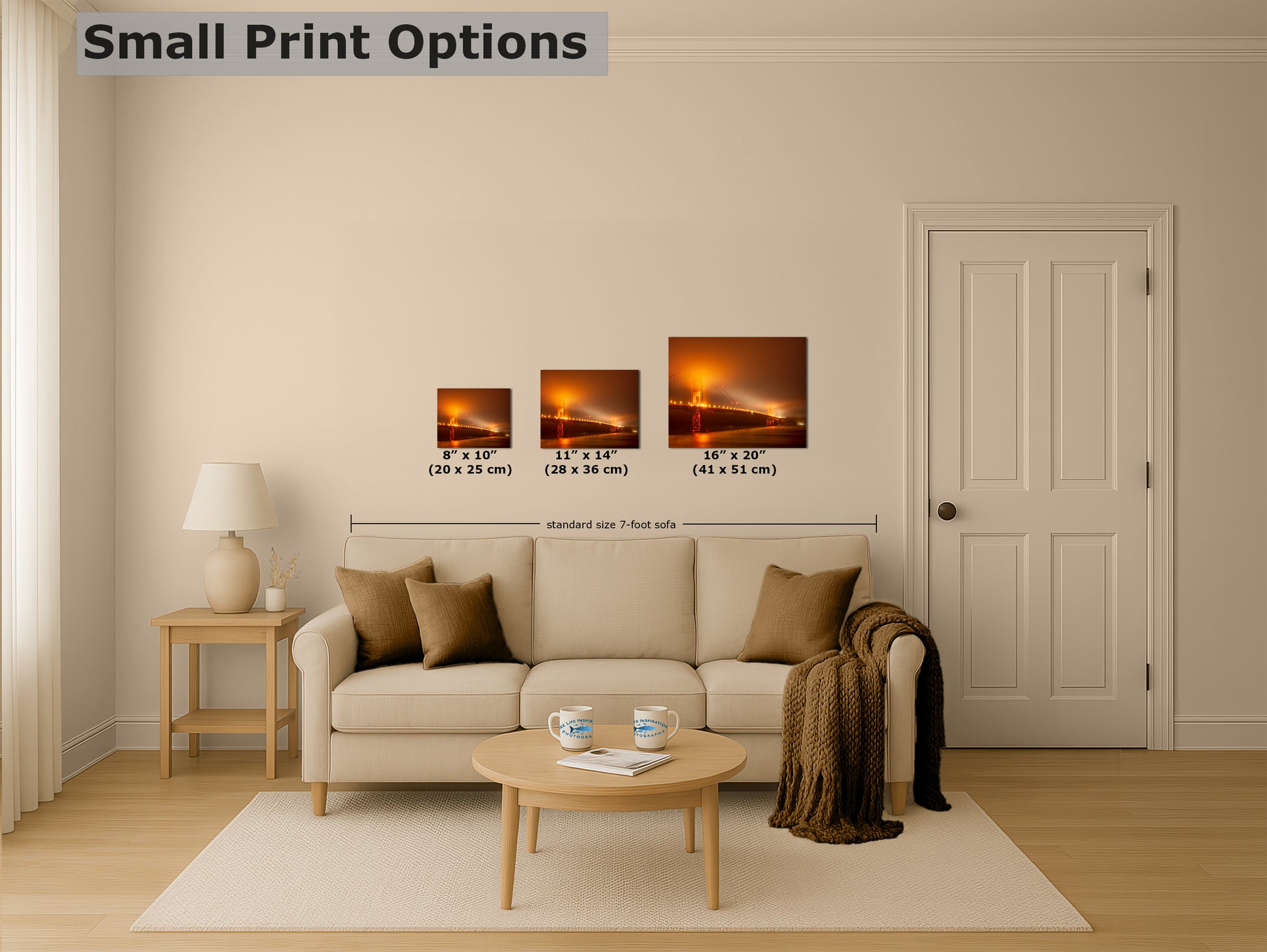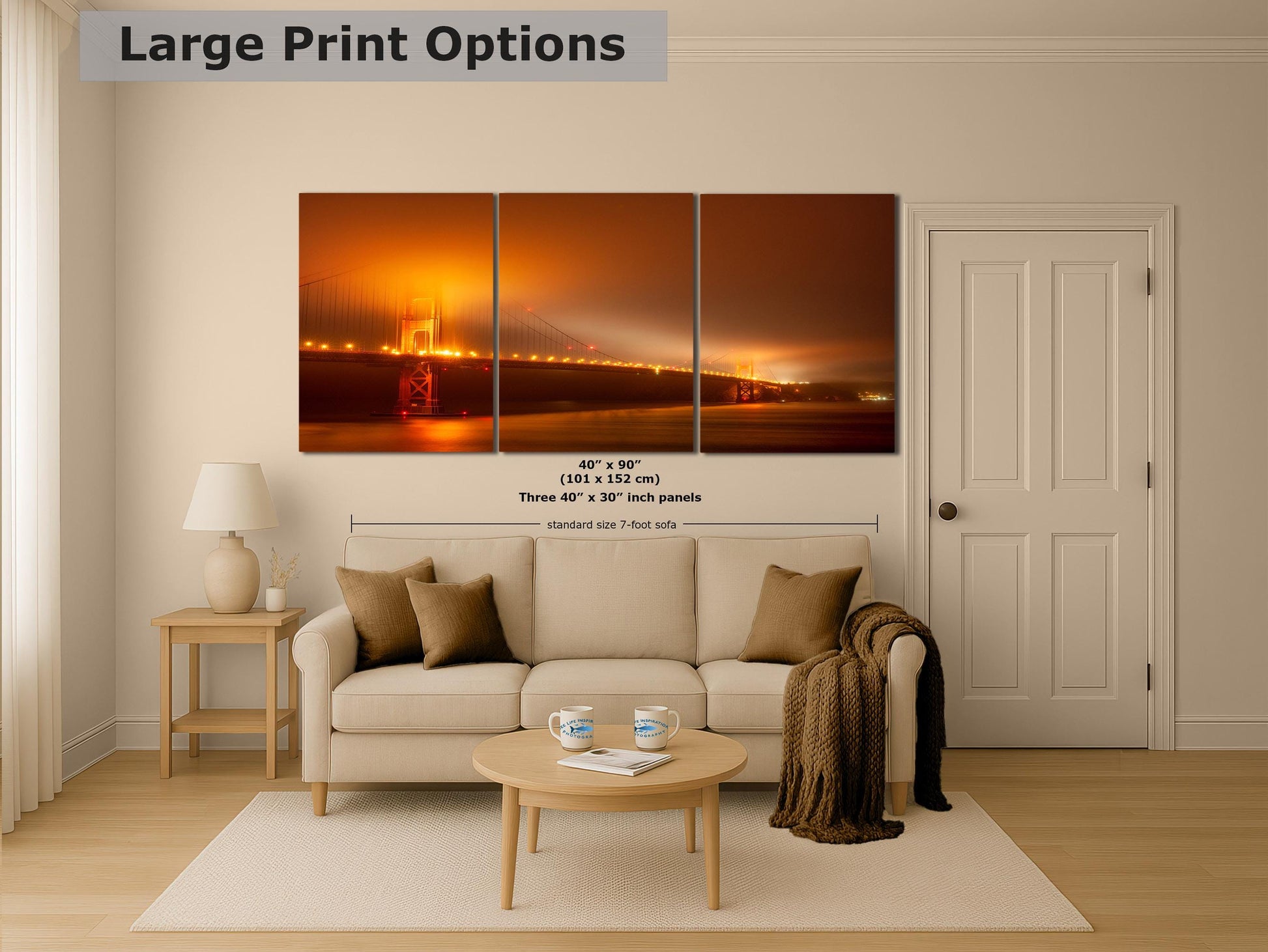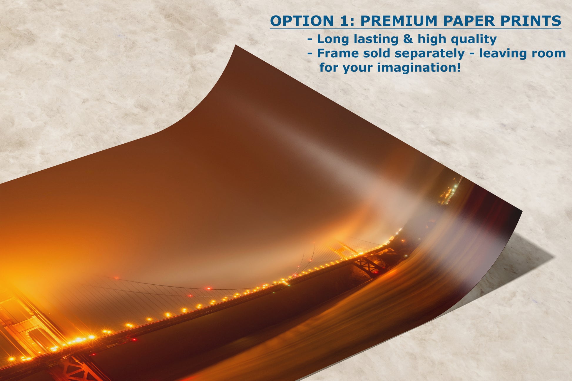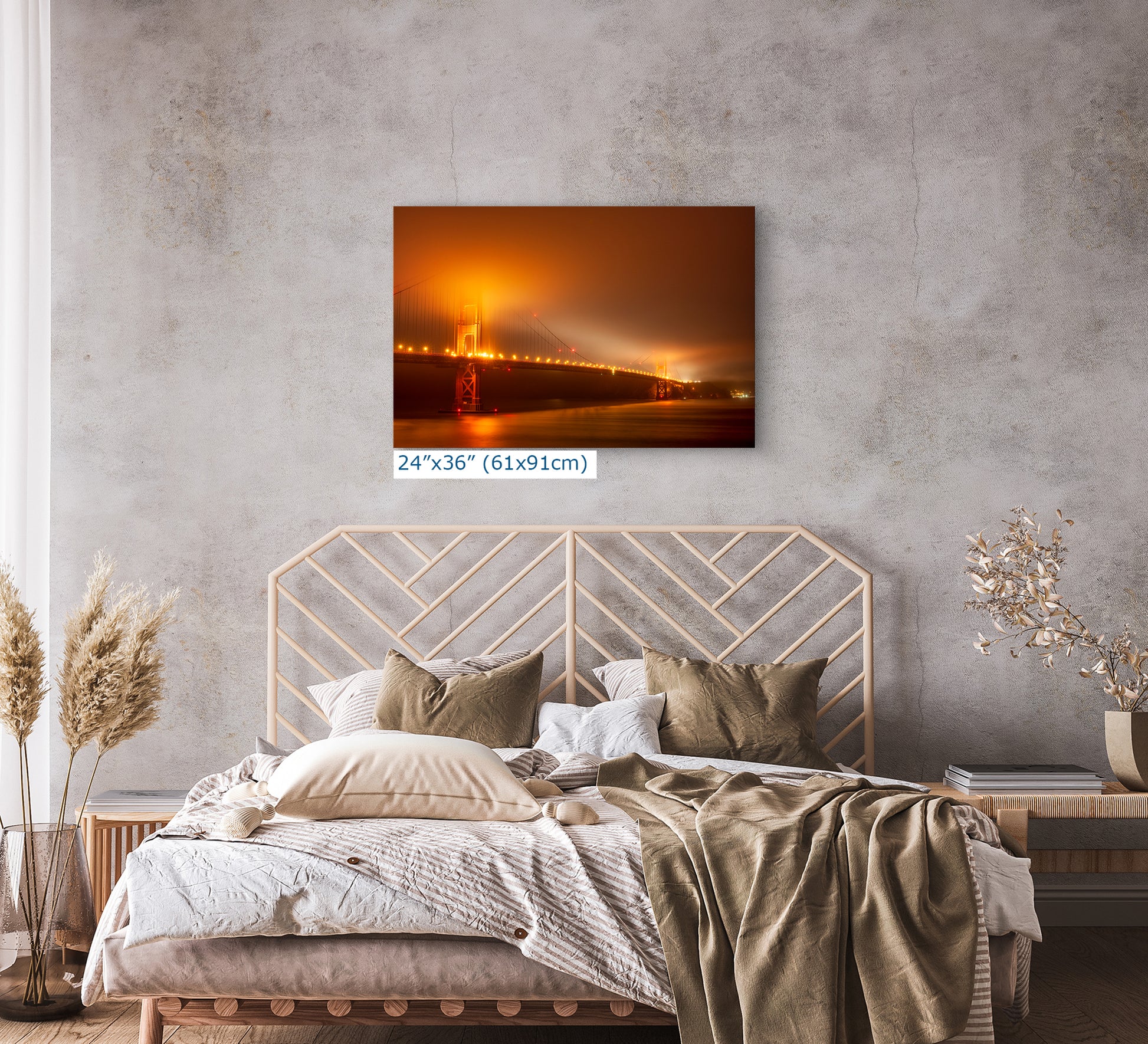 San Francisco Golden Gate Bridge Picture Foggy Night Wall Art | Fine Art Print for House Decor, Office, Dorm, Meditation, Relaxation Artwork