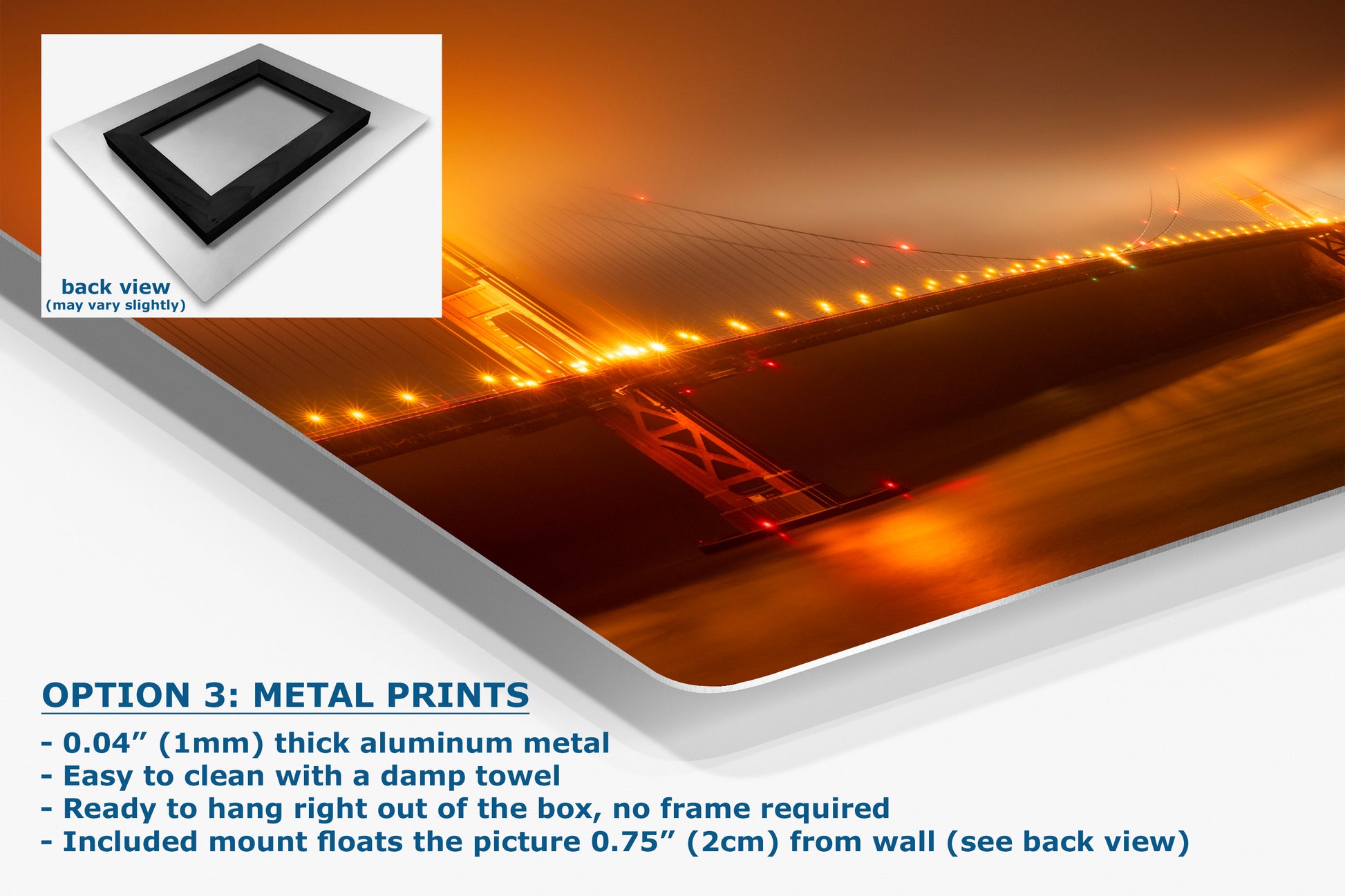 - Floating metal art: 0.04" (1mm) thick specialty coated aluminum metal includes a mount that floats the picture 0.75" (2cm) from your wall