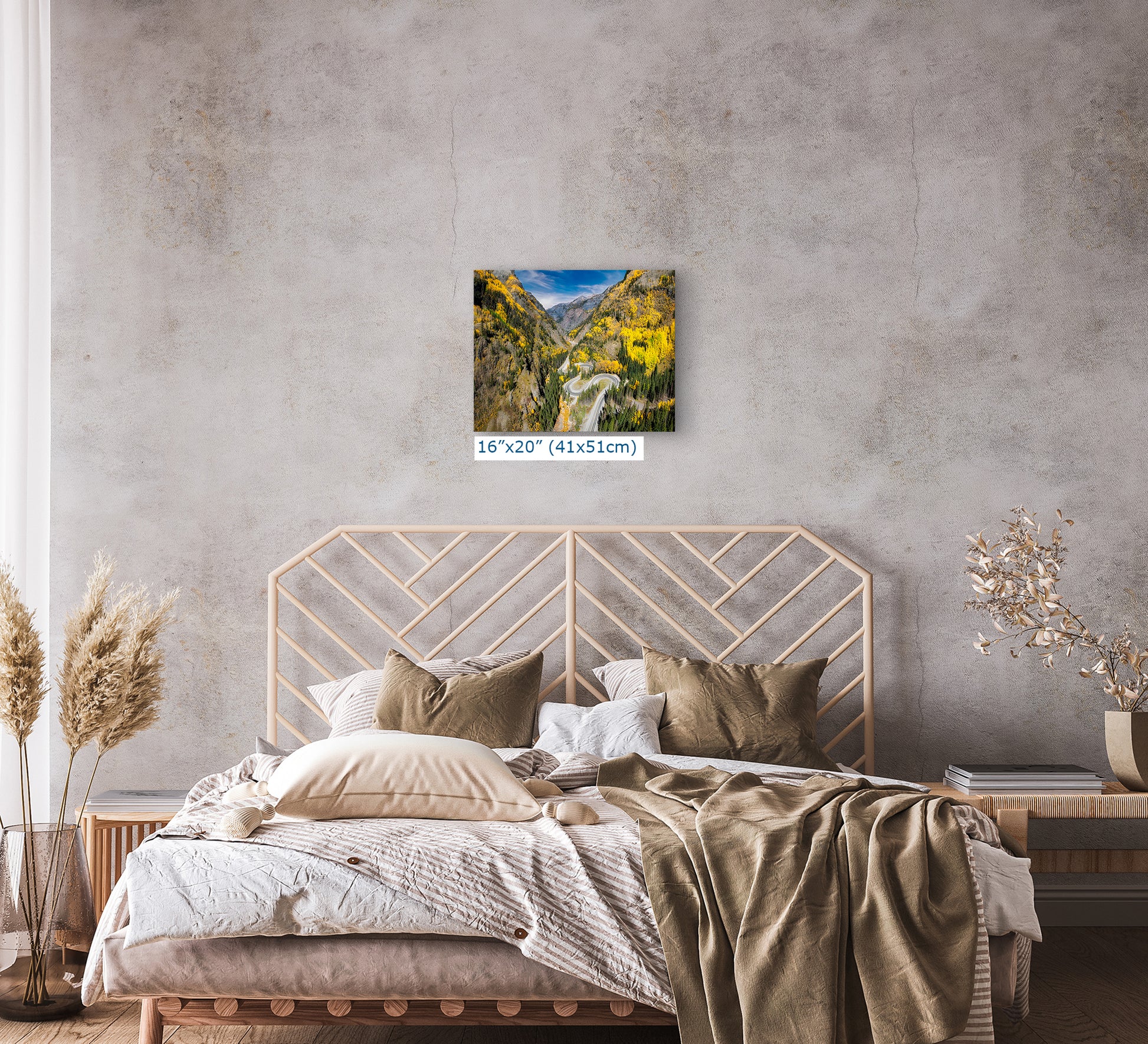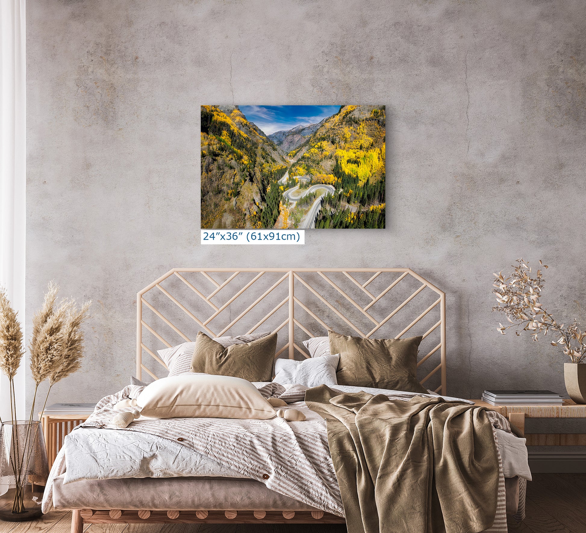 Perfect for relaxation, meditation, or adding vibrant scenery to your home or office, this artwork highlights the iconic Million Dollar Highway winding through the San Juan Mountains.