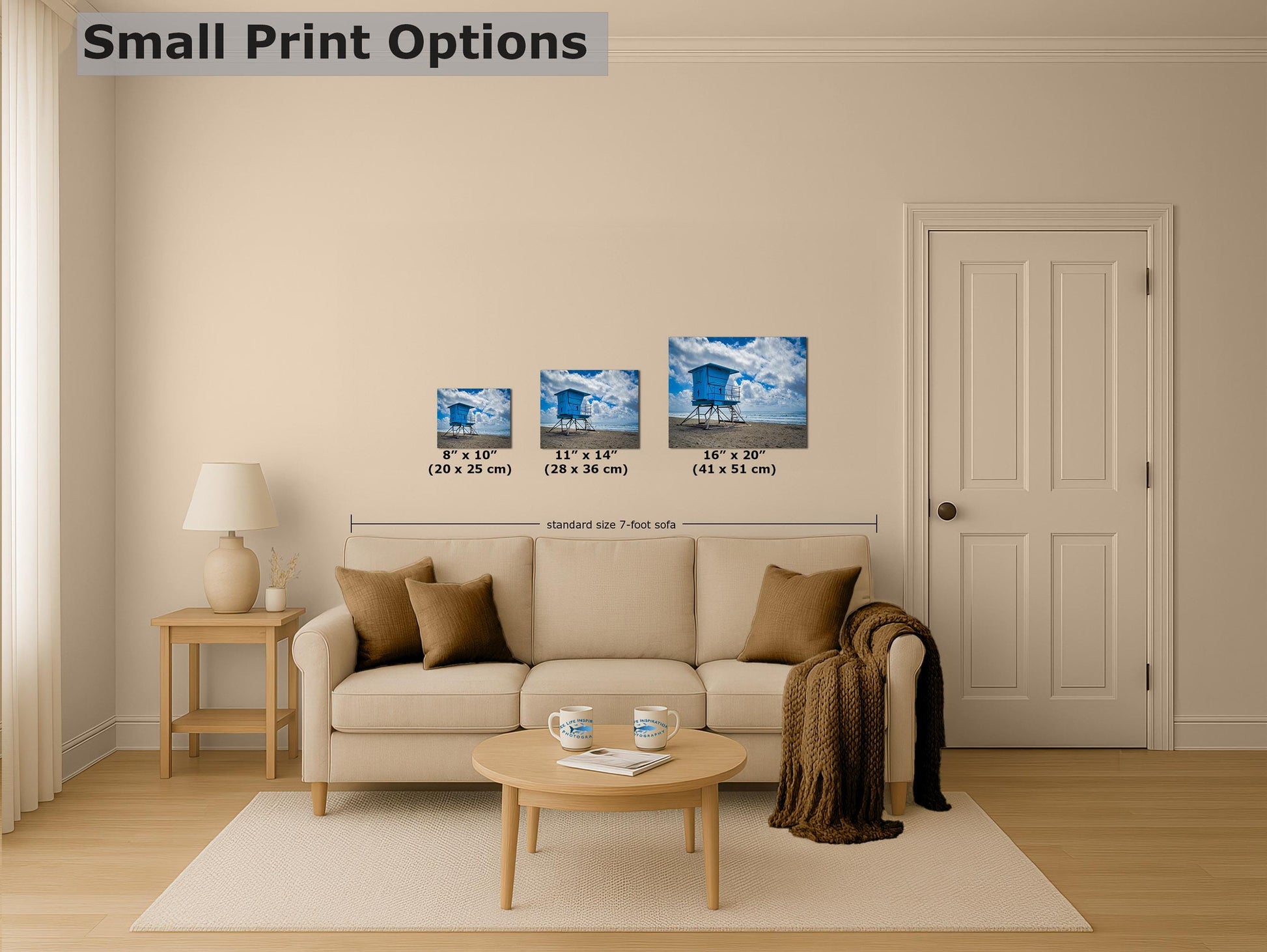 Southern California Coastline Lifeguard Tower Ocean Picture, Oceanside Relaxation Artwork for Meditation, Office, Dorm, and House Decor
