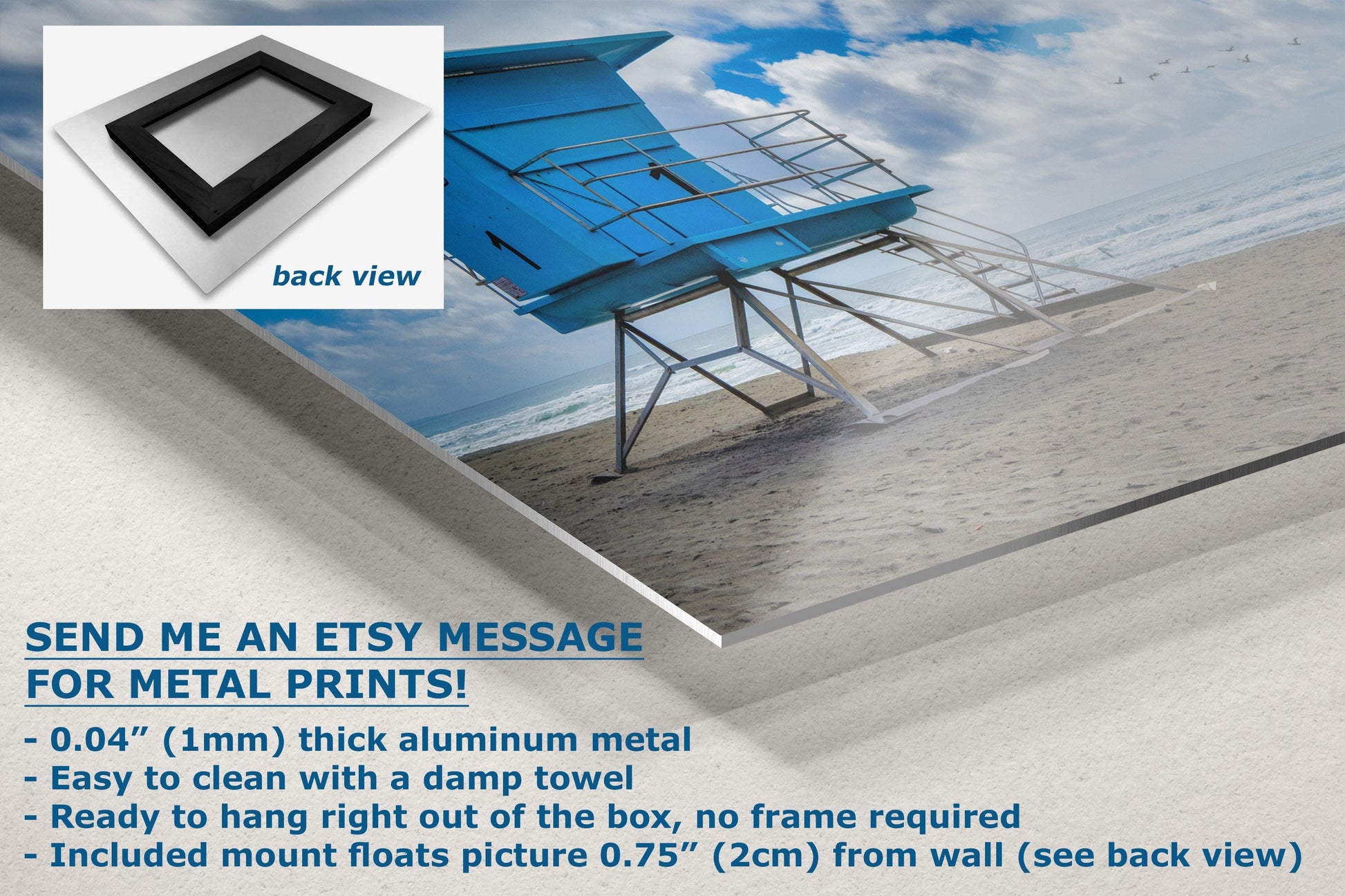 - Floating metal art: 0.04" (1mm) thick specialty coated aluminum metal includes a mount that floats the picture 0.75" (2cm) from your wall